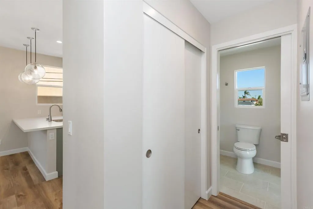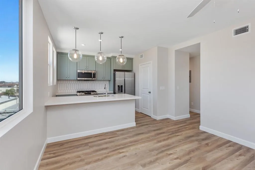 2714 Camulos St, Ocean Beach in San Diego, CA. Ocean Beach - Near new duplex construction with excellent location! One unit is rented, 2nd unit available (2714 Camulos, 2nd floor unit) for May 1st 2026 move-in, $3,300/month, All utilities included (Water/Natural Gas/Electricity/Trash). Includes attached one car garage.Tthe unit features an open floor plan with a large living /dining space, 2 spacious bedrooms, 2 full baths and attached 1 car garage. The newer kitchen has quality cabinets, quartz counters, an island-type bar with pendant lights, pantry and stainless steel appliances (including fridge). Each bedroom offers ceiling fans, large windows, luxury vinyl plank flooring and closet. Some of the windows offer views of the lagoon, neighborhood and city lights. the unit offers 2 baths with tile flooring, tub/shower combo and free standing vanity. Interior laundry closet with washer/dryer combo. Desirable Ocean Beach: the location is convenient; close to parks, beaches, bikeways, shopping centers, restaurants, schools, with easy freeway access. Live the Southern California Lifestyle! Pets are considered with restrictions. The square footage is approximate and not guaranteed.