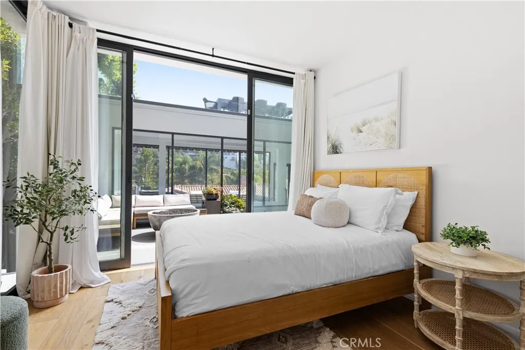 Tucked away on a quiet cul-de-sac in the Hollywood Hills, this modern architectural masterpiece, designed by esteemed architect Jay Vanos, offers sweeping panoramic views of the surrounding hillside and twinkling city lights beyond. Inside, the main living space is highlighted by a spacious family room with lofty two-story ceilings and walls of glass that flood the space with natural light, while the adjacent chefs kitchen is outfitted with top-of-the-line appliances and a sun-drenched breakfast nook. The entertainers level features a formal living room with a sleek wet bar, two well-appointed bedrooms and a full bathroom, all opening to an outdoor retreat that boasts an infinity pool and oversized spa, perfect for hosting and relaxing in style. On the upper level, youll find two ensuite bedrooms, including a luxurious primary suite complete with a custom walk-in closet and open-concept bathroom, along with a versatile bonus room currently utilized as an additional walk-in closet. A rooftop deck showcases unobstructed 360-degree views, while three levels of patios offer seamless indoor-outdoor living and dining throughout. Additional features include a dedicated laundry room, private elevator and comprehensive security system. Theres also a three-car garage with a storage area and bonus room above, perfect for a home office, gym or studio. Centrally located, this property is just moments from premier shopping, trendy restaurants, vibrant entertainment options like the Hollywood Bowl, Lake Hollywoods hiking trails and so much more.