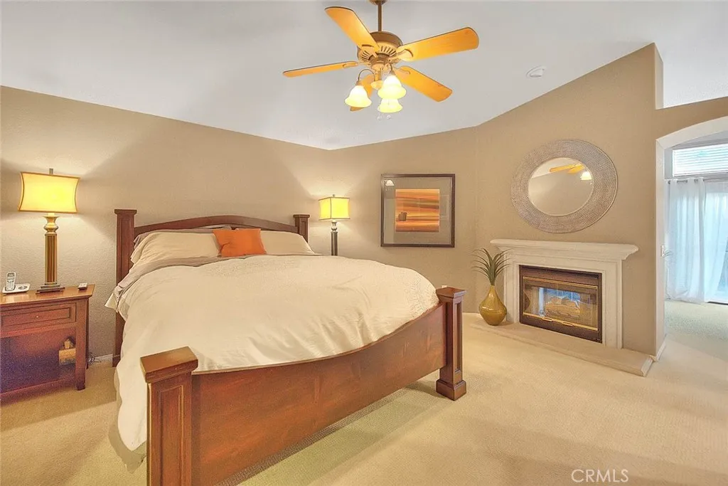 Beautiful, highly upgraded Corona 4 bedroom, 4 bath home with a resort-style backyard featuring a pool, spa, barbecue island, and firepit. The home was built in a terraced fashion, which offers a high degree of privacy from the neighbors. Offering 3,060 square feet of living space on a 10,019 square foot lot (per tax roll), this property impresses inside and out. Front and rear hardscaping includes flagstone decking and stacked rock accents that elevate curb appeal from the moment you arrive. The open floor plan is filled with natural light and finished in a designer color palette. Soaring ceilings welcome you into the formal living room. A dual-sided fireplace connects the formal dining and family rooms, creating warmth for entertaining or relaxing evenings. The well-designed kitchen features furniture-grade wood cabinetry, granite counters, travertine flooring, stainless steel appliances, recessed lighting, a pantry, a center island, a breakfast bar, and a spacious breakfast nook for casual dining. The primary suite is exceptional. A dual-sided fireplace serves both the bedroom and private retreat, ideal for a home office or reading lounge. A balcony off the retreat overlooks the backyard. The en-suite bath offers a dual sink vanity, walk-in shower, soaking tub, and large walk-in closet with built-ins. Upstairs includes two guest bedrooms, each with its own en-suite bath. A main-level bedroom and full bath provide flexibility for guests or multigenerational living. The first floor also features an indoor laundry room with extra storage. The private backyard has no rear ne