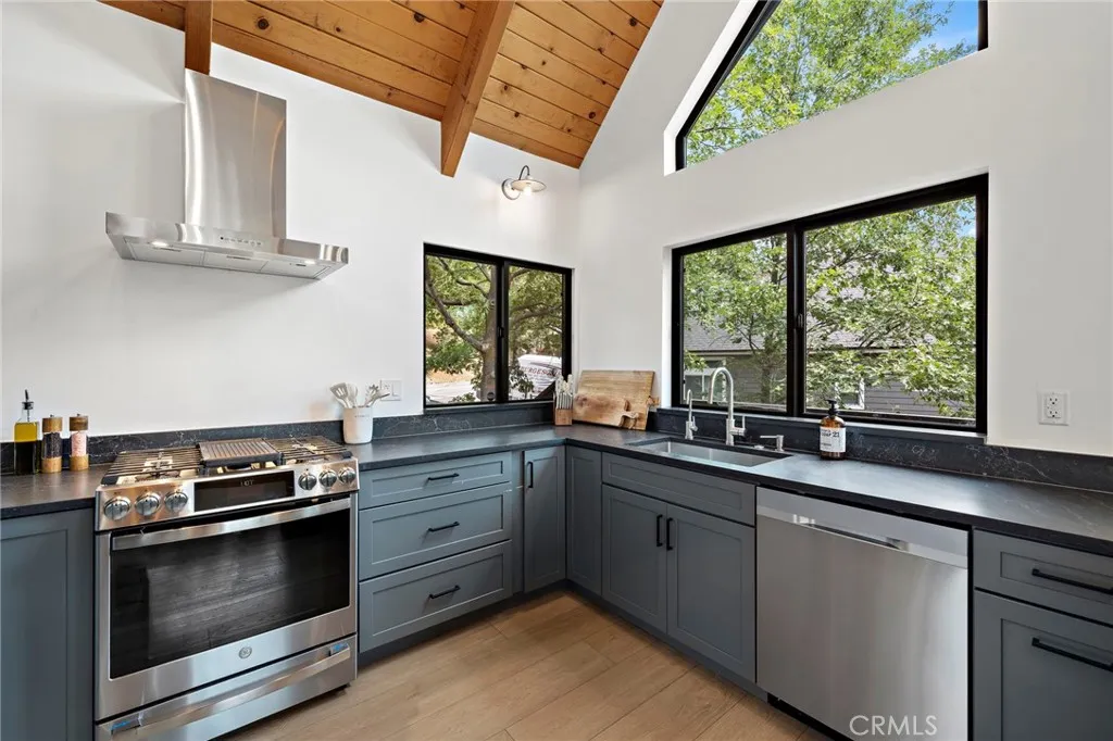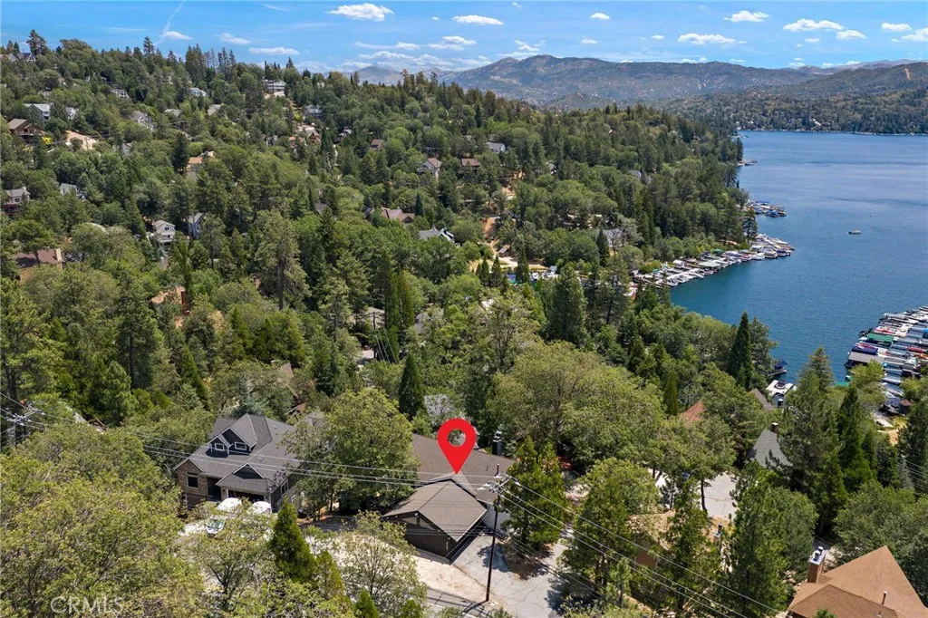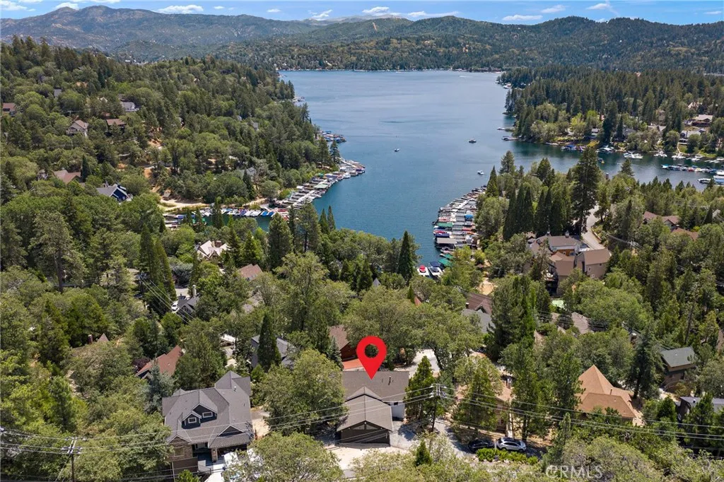 This stunning 4-bedroom, 3.5-bath mountain retreat combines modern upgrades with timeless lodge-style charm, offering captivating lake views from nearly every window. Thoughtfully remodeled in 2020-2021, the home features a bright open floor plan perfect for both comfort and entertaining. The main level showcases a dramatic great room with vaulted ceilings, expansive windows, recessed lighting, and a cozy gas fireplace that opens to a large entertainers deck. The remodeled kitchen is a chefs dream with stainless steel appliances including a refrigerator, shaker-style cabinetry, pantry with pullout shelves, granite counters, peninsula with seating, and large windows framing the view. Two primary suites with spa-inspired bathsone on the main level and another on the lower levelprovide privacy and flexibility, while two additional bedrooms and a spacious family room with a second fireplace and walk-out access to the lower deck with a swinging bench create the perfect retreat for family and guests. Outdoor living shines with two expansive decks crafted in durable Trek decking, ideal for gatherings, dining, or simply enjoying the mountain air and lake views. Additional highlights include dual HVAC and A/C systems with split thermostats, vinyl flooring throughout, inside laundry with washer and dryer, a finished pull-through two-car garage with automatic doors on both sides, and ample guest parking. Sold mostly furnished for a true move-in ready experience, this home is ideally located just above the trails of North Bay Cove with lake rights, peaceful morning walks, sunset stroll
