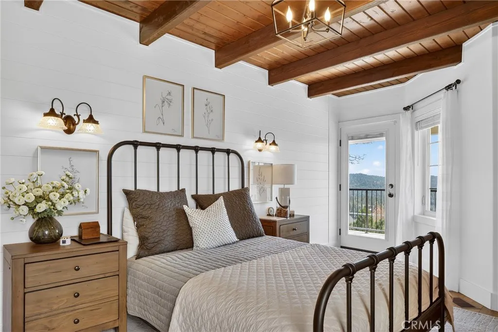Dont miss this magnificently remodeled lake view home, showcasing breathtaking panoramic views from both expansive decks and a dramatic wall of windows that fills the main living space with natural light and unforgettable ambiance. Every inch of this homeinside and outhas been thoughtfully upgraded with exquisite attention to detail. The design embodies a sophisticated Modern Mountain aesthetic, highlighted by a stunning tuxedo-style kitchen featuring a solid white farmhouse sink, commercial-grade appliances, and a custom iron island. Beautiful LVP luxury waterproof flooring flows throughout, complemented by custom shiplap walls and ceilings that add warmth and character. All bathrooms have been professionally designed to perfection, including a show-stopping antique chandelier in the primary bath that adds timeless elegance. Additional features include two fireplaces, new windows, auto blinds on most windows, updated electrical wiring, and refinished original ceilings and beams that preserve the homes charm. Step outside to enjoy the custom iron railing with a built-in bar on the deckperfect for entertaining while taking in the serene lake views. Comfort is ensured year-round with a new HVAC system, plus an additional mini-split unit in the primary bedroom. Custom craftsmanship shines throughout, with both fireplace mantels, the kitchen island, and a downstairs steel and walnut vanity all designed to complement the homes refined style. Above the garage, approximately 450 square feet of buildable space offers exciting potential for an additional room or apartment, while a l