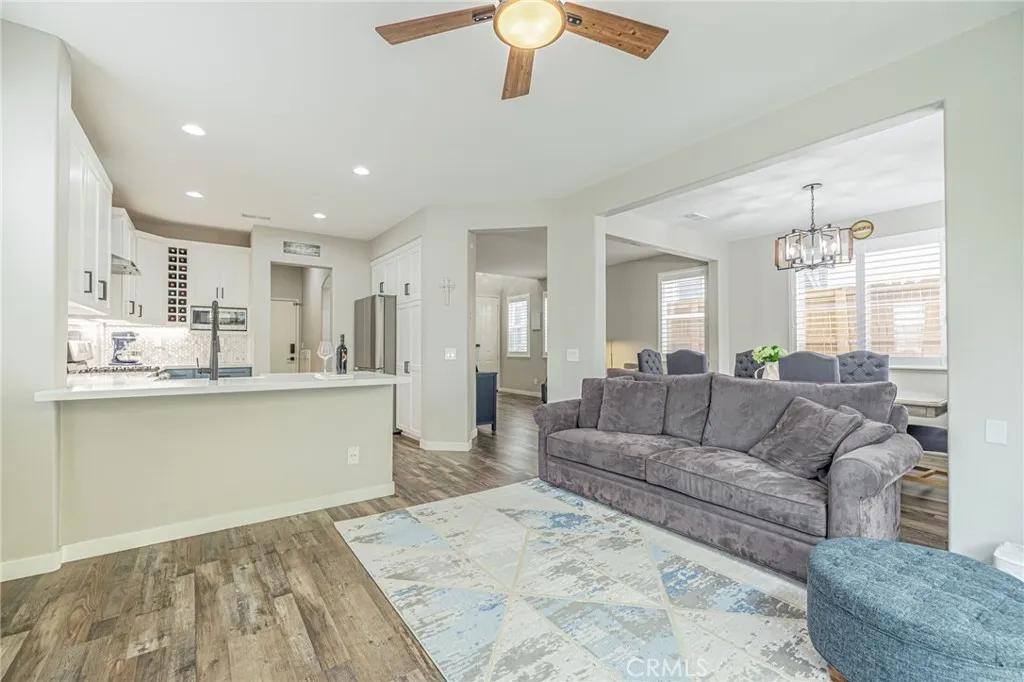 Welcome to this beautifully remodeled residence in the desirable community of Castaic, where thoughtful design meets elevated everyday living. This turnkey home offers 3 bedrooms, 2.5 baths, and a versatile flex space ideal for a home office, den, or guest room. The interior has been extensively upgraded with wide-plank luxury vinyl flooring throughout, complemented by a soft, neutral color palette that creates a warm and inviting ambiance. The fully redesigned kitchen is a standout feature, showcasing quartz countertops, custom shaker cabinetry, a marble backsplash, a Kohler farmhouse sink, built-in wine refrigerator with dedicated wine storage, and a custom range hoodperfectly blending style and functionality. All bathrooms have been tastefully remodeled with high-end finishes, including quartz and marble surfaces, custom vanities, designer tilework, and updated fixtures. The primary suite offers a spa-inspired retreat with a soaking tub and separate shower, creating a relaxing, resort-like experience. The living spaces are equally inviting, highlighted by a beautifully updated fireplace surround that adds warmth and a refined focal point. Additional enhancements include solid wood interior doors with sleek black hardware, custom shutters throughout, updated lighting at the entry and dining areas, and ceiling fans in each bedroom. A new custom sliding door opens to a serene, low-maintenance backyard designed for relaxation and entertaining, featuring ambient lighting, a shaded patio cover, raised planter beds with citrus, and spacious side yards with a garden shed for add