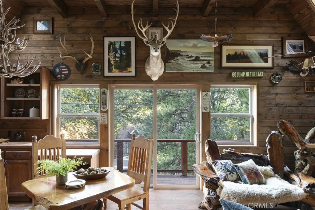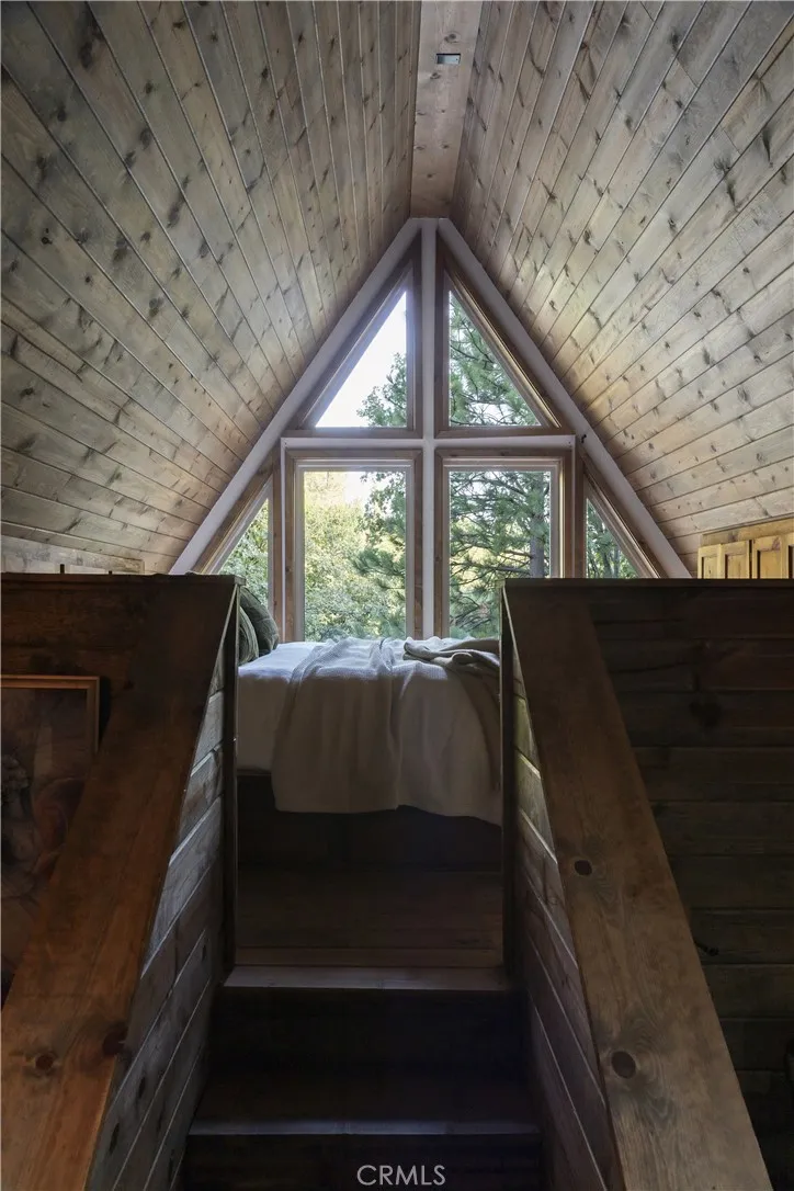 Two iconic A-frames on one property, tucked just off the waters of coveted North Bay. A seasonal creek winds between the cabins, with a treehouse set back among the trees, creating a setting that feels private yet connected to everything Lake Arrowhead has to offer. This rare first tier property offers an exceptional lake lifestyle, with a multiple dock slip featuring an end slip, boat, and rare level access straight to the water. The seller is offering the buyer of the home first right of refusal to purchase the dock separately for additional monies, providing the opportunity to secure the complete Lake Arrowhead experience. No endless stairs, just an easy walk to the water. Step inside the main A-frame and experience a true mountain lodge. Rustic wood paneling, walls of glass, exposed beams, and stone accents bring the outdoors in. The home offers three bedrooms, two baths, decks on both sides, and a jacuzzi with a peek of the lake, ideal for peaceful mountain evenings. Follow the stairs down through the expansive outdoor patio to the guest A-frame, offering one bedroom, one bath, a cozy living space, and a two car garage below. With warm wood paneling, large windows, a small deck off the living room, and a loft style bedroom, it mirrors the same classic A-frame charm. Outdoors, a spacious patio and outdoor kitchen create the perfect setting for entertaining or simply slowing down and enjoying the mountain air beneath the trees. Iconic architecture, rare lake access, and a lifestyle opportunity that rarely comes available. This is Lake Arrowhead at its best.