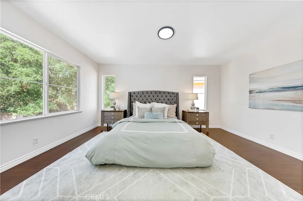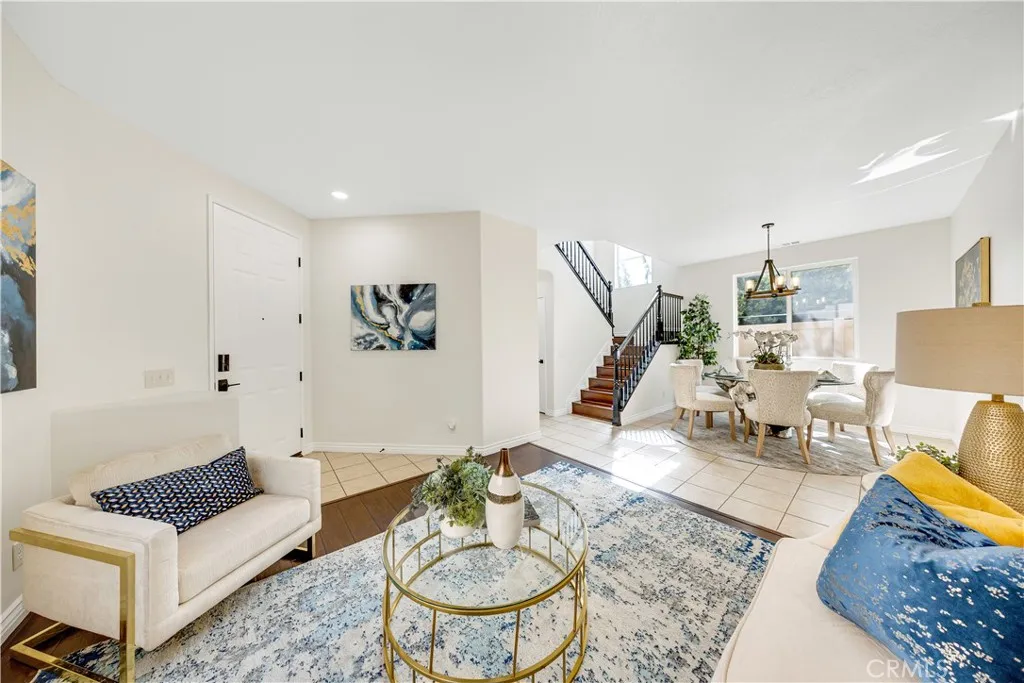 Welcome to this beautiful two-story detached condo just like a single family home featuring 4 bedrooms and 2.5 bathrooms. Bright and airy with abundant natural sunlight, this residence offers laminate wood flooring throughout both levels. The inviting floor plan opens to a spacious living and dining area, seamlessly connected to the updated kitchen with soft-close custom cabinetry, quartz countertops, and stainless steel appliances. A generous family room with a cozy fireplace creates the perfect space for gatherings, while the convenient downstairs powder room is ideal for guests. Upstairs, the luxurious primary suite boasts a large walk-in closet and a fully upgraded bathroom complete with custom cabinetry, quartz counters, and a stunning standalone soaking tub. All secondary bedrooms are spacious, light-filled, and comfortable. Enjoy a great-sized backyard, perfect for entertaining, relaxing, or creating your own outdoor retreat. This home combines modern upgrades, thoughtful design, and ample living spaceready for you to move in and enjoy!