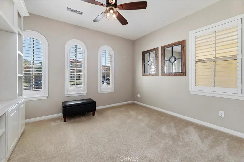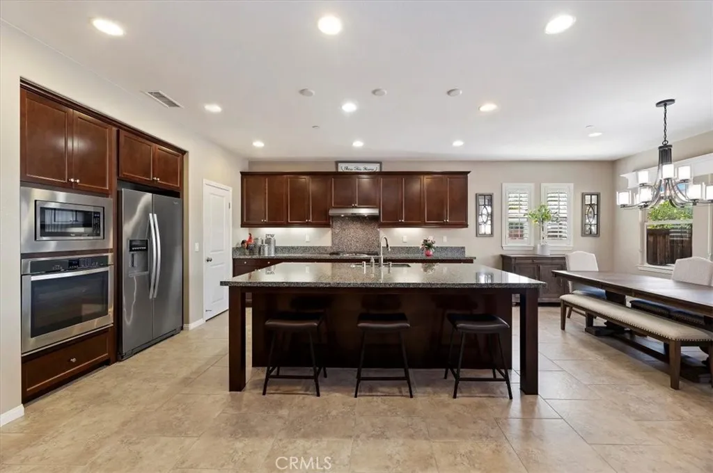 Stunning 4 Bedroom Home with Tandem 3-Car Garage and a Backyard Oasis!!! Welcome to this Menifee Heritage Lake beautifully maintained 4-bedroom, 3-bathroom home featuring approx. 2,785 sf of spacious living space, floor plan and a layout that offers a great flow throughout the home, making it perfect for both everyday living and entertaining. The interior offers tile flooring throughout the main living areas with comfortable carpet in the bedrooms, creating a balance of style and warmth. The heart of the home is the impressive kitchen with a large center island, ideal for gatherings and hosting. The kitchen also features a built-in oven and microwave and opens seamlessly into the dining and living spaces. The dining area includes custom built-in shelves, adding both charm and functionality. Ceiling fans are thoughtfully placed throughout the home for added comfort. The primary suite offers a relaxing retreat with a well-appointed bathroom that includes dual sinks and plenty of space. Step outside to a backyard that truly stands out like your own private oasis. Enjoy the built-in BBQ, a beautiful aluminum wood-style patio cover, and plenty of stamped concrete, creating the perfect space for outdoor entertaining, relaxing, and hosting gatherings year-round. Additional highlights include a tandem 3-car garage providing ample room for vehicles, storage, or a workspace, along with a tankless water heater for modern efficiency and convenience. This home has so much to offer and is truly a beauty. A must-see property that combines comfort, space, and great entertaining areas both