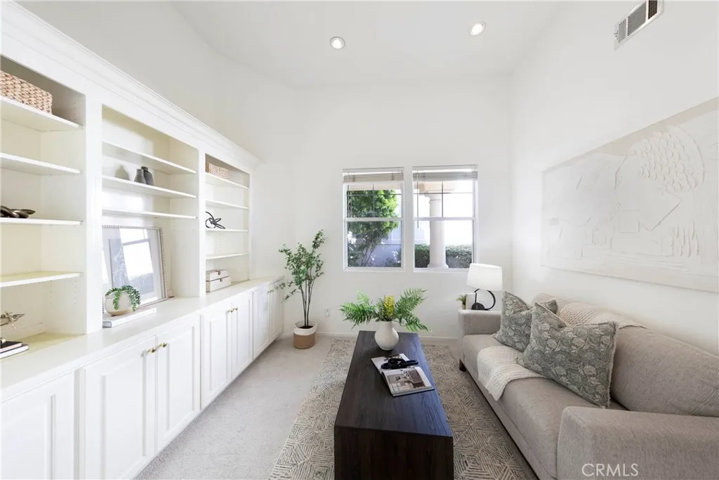 Rare and highly sought-after villa located on the 13th fairway of San Juan Hills Golf Course! Relax and enjoy peaceful moments surrounded by majestic trees, rolling green hills, and the soothing sounds of birdsong. Enter through a private gated courtyard featuring lush landscaping and an attractive flagstone surface. Inside, youll be impressed by the bright, open feel created by abundant windows and soaring ceilings. The open floor plan is ideal for both everyday living and intimate gatherings, seamlessly connecting the living room, dining area, and kitchen. The kitchen features abundant cabinetry, a spacious pantry, a center island for convenient meal preparation, and direct access to the backyardperfect for enjoying the stunning views. The spacious living room offers a cozy fireplace and built-in cabinetry for optimal storage. The primary suite is generously sized and includes a luxurious bathroom with dual sinks, a soaking tub, a separate shower, and a large walk-in closet. A sliding glass door provides direct access to the lush backyard. A versatile dencomplete with built-ins for closet or storage usecan easily serve as a third bedroom or home office. The secondary bedroom and bathroom are thoughtfully positioned on the opposite side of the home, offering maximum privacy. The garage provides ample storage space. This is a completely detached condo. Located in a highly coveted community, this home is just moments from all that San Juan Capistrano has to offer. Dont miss this exceptional opportunity!