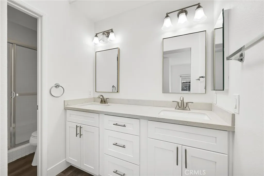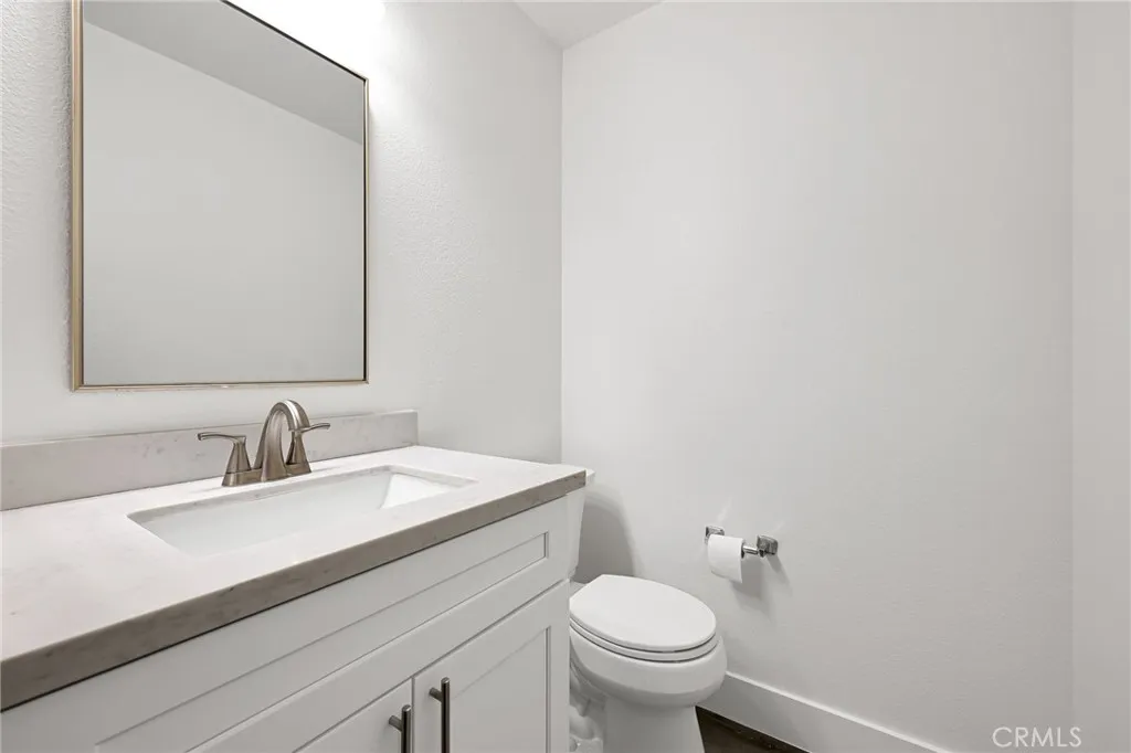 Situated on the Tijeras Creek Golf Course within the sought-after Tierra Linda community of Rancho Santa Margarita, this light-filled residence offers a thoughtful blend of comfort, function, and everyday ease. Positioned on a quiet cul-de-sac, the home features 3 bedrooms and 2.5 bathrooms, including a main-level bedroom with direct backyard access and a nearby bath, ideal for guests, a home office, or flexible living. The main living spaces are designed with an open, connected flow, where natural light moves easily throughout. Updated vinyl flooring carries across the main level, while sliding doors extend the living space outdoors to a private patio with artificial turf and room for both dining and lounging, all set against peaceful golf course views. The kitchen is both functional and inviting, appointed with granite countertops, white shaker cabinetry, and stainless steel appliances. It opens seamlessly to the dining and living areas, creating a natural setting for gathering and daily living. Upstairs, the primary suite offers a quiet retreat with fairway views, a dual-sink quartz vanity, and a walk-in shower. A secondary bedroom with its own full bath provides privacy and comfort, while a spacious loft offers versatility for a home office, media space, or play area. Additional highlights include a two-car garage with built-in storage and two driveway parking spaces. Residents of Tierra Linda enjoy access to Rancho Santa Margaritas extensive amenities, including parks, pools, trails, Tijeras Creek Golf Course, and the lake and beach club, along with access to Tesoro Hi