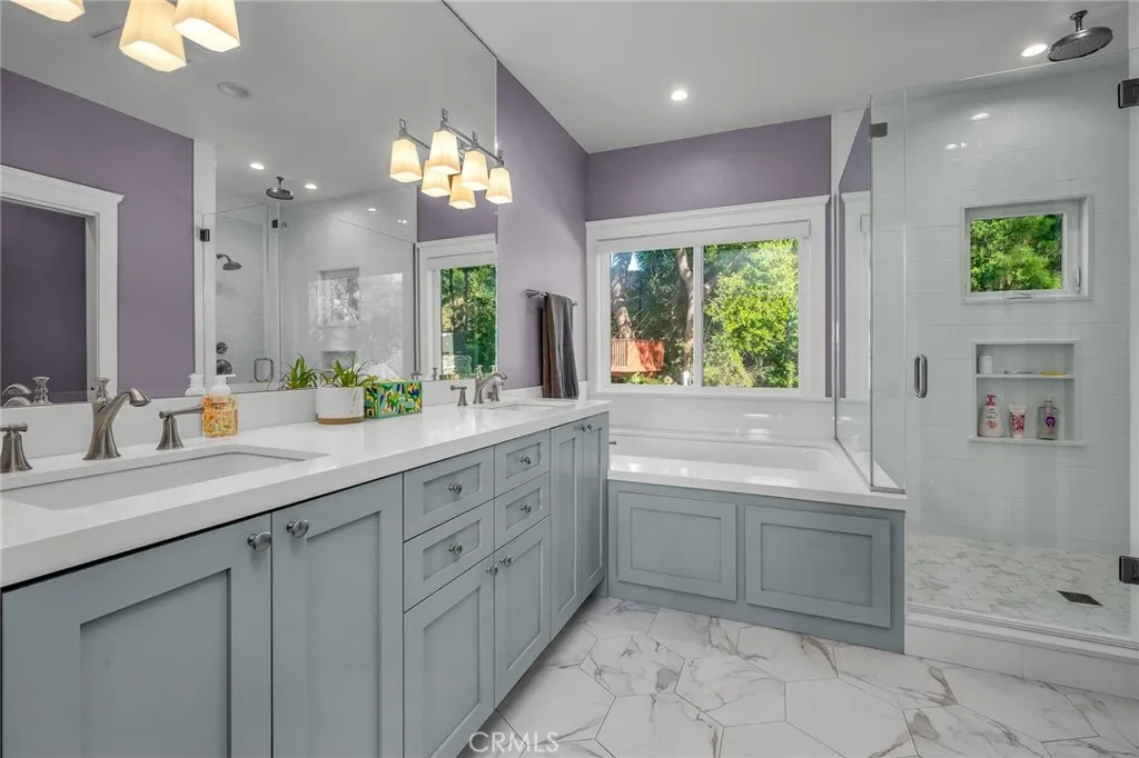 Custom Home nestled at the end of a quiet Cul-De-Sac, this stunning 4 bedroom, 5 bathroom home offers the perfect blend of luxury and everyday comfort. A total rebuild was completed in 2017 by Lane Design Buildersthoughtfully designed residence boasts 3,312 sq. ft. of open, airy living space on a generous 16,873 sq. ft. lot. Main Level Highlights: An open Gourmet Chefs Kitchen with large center Island and breakfast nook, Thermador stainless steel appliances-double oven, refrigerator, and dishwasher, Corian countertops and custom backsplash. Open family room with gas fireplace, TV and with soaring vaulted ceilings that add to the dramatic entrance - step through the sidling doors to a serene private backyard and patio area with a custom oversized spa with waterfall accent, propane gas firepit, custom built-in out door BBQ area-a true timeout. Second Level Features: Master suite includes a luxurious master bath with double sinks, oversized walk-in closet, plus a second closet. Fourth bedroom: Equipped with a built-in queen size Murphy bed, bathroom, and a versatile work space. Other exceptional features include: copper plumbing, double pane windows, plantation shutters, waterproof tile flooring throughout, recess lighting, fire sprinklers, smoke detectors, attached 2 car garage, and ample storage. Conveniently located just minutes from Palos Verdes top rated schools, hiking trails, and fine dining. This home offers a lifestyle of comfort, elegance, and sophistication.