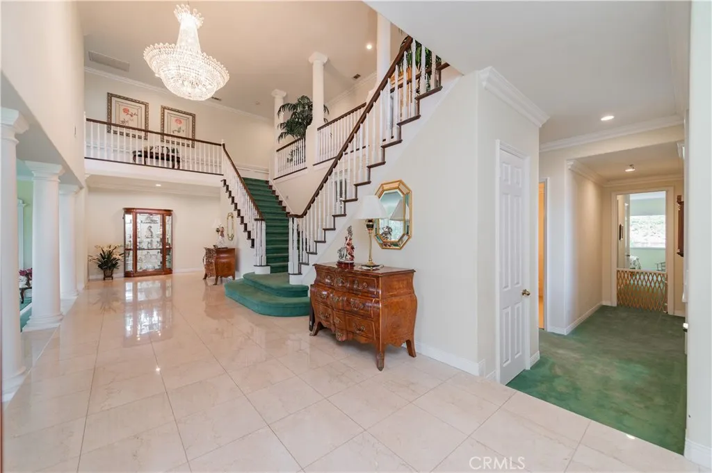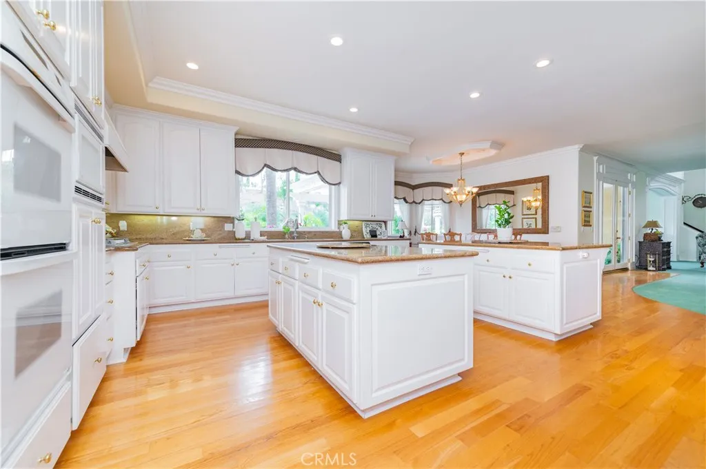 This exceptional estate, with original owner, located in the prestigious gated community of The Country, spans two parcels and boasts six luxurious bedroom suites, offering unparalleled comfort and privacy. An office with a full bath that can be used as the second downstairs bedroom suite, and an elegant, well-appointed powder room conveniently located between the formal living room and spacious family room, making it ideal for entertaining. A dramatic two-story grand entry with a crystal chandelier welcomes you. Wide double staircases leading to different sections of the upper level set an impressive tone upon arrival. The formal living and dining rooms provide generous spaces for gatherings, while the family room is equipped with a custom-built-in entertainment center and is seamlessly connected to the large open kitchen, breakfast nook, a couple of cozy conversation sitting areas, and a gorgeous wet bar with a table for wine tasting. The gourmet kitchen is a chefs dream, complete with dual center islands, custom cabinetry, and an adjoining wok kitchen for added culinary flexibility. Enjoy casual dining in the bright breakfast nook, perfectly situated off the open kitchen layout. Designed for both everyday living and grand entertaining, this home offers a thoughtfully designed floor plan that encourages flow and connection. Crown molding throughout the home. Wide and open upper-floor hallway with wainscot paneling. The upstairs laundry room is conveniently located near all bedrooms, and a bedroom-sized storage room provides ample space for seasonal dcor and miscellaneous