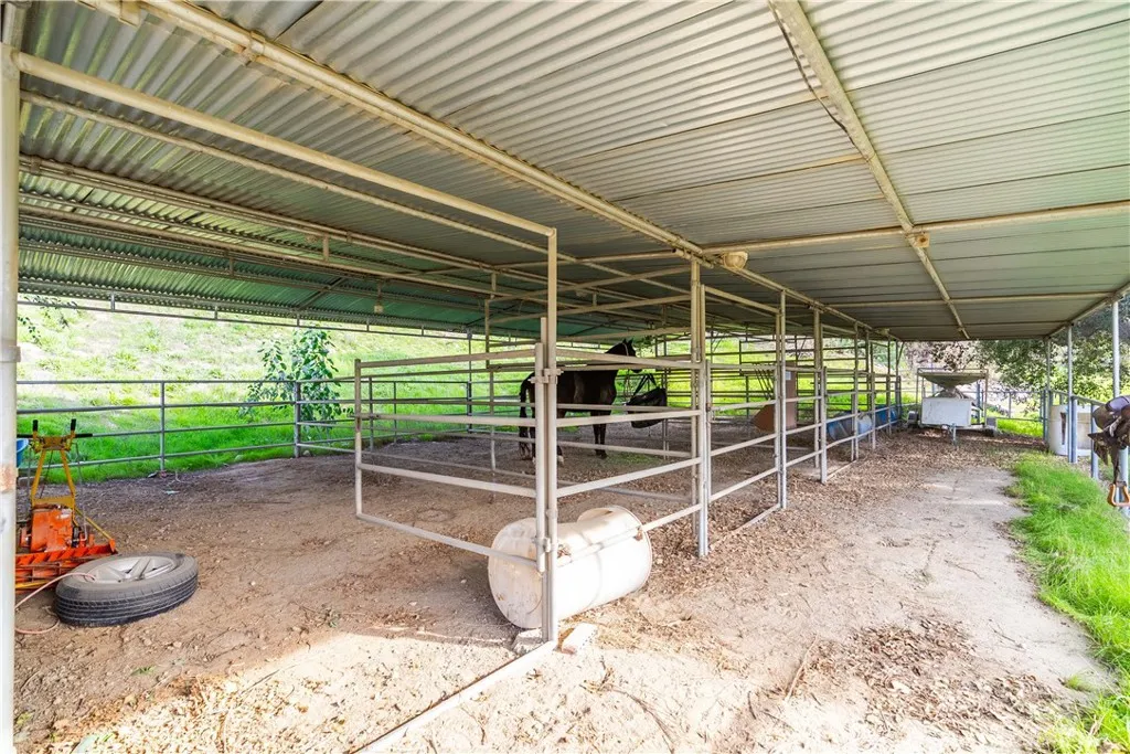 Luxury Equestrian Estate in the Canyon Country Foothills. Calling all Recreation Enthusiasts! Nestled in the tranquil Sand Canyon community, this exceptional estate offers the perfect blend of privacy, comfort, & functionality. Situated on 2.5 acres with an impressive 2,284-square-foot shop/garage/RV storage, and bonus detached garage, providing endless possibilities for vehicles, equipment, or workshop space. For your equestrian needs, lush pastureland, equestrian amenities that include covered stalls, hay barn, tack room and pasture. Heading inside, the 2,684-sqft residence features 4 beds, 3 baths, thoughtfully designed w/wood-beamed ceilings & warm inviting atmosphere. Entering the home, you are greeted with soaring ceilings, fantastic layout and views of the estate. To your right, a spacious living area w/fireplace and stunning floor to ceiling, brick surround. This expansive room also offers a dining area, endless wood ceilings and more idyllic views of the property. Moving through to the heart of the home, you will be wrapped in the warmth of the family room, complete with a freestanding woodburning stove. Tying seamlessly into this space, is the large, well-appointed kitchen, perfect for gatherings & everyday living. Just off the kitchen, you will find the first bedroom, bath, laundry and office space. Upstairs, the expansive primary suite retreat offers a peaceful escape & views of the surrounding landscape. Rounding out the upstairs is the third bath & remaining well appointed bedrooms, featuring built-in storage & workspaces. Step outside to discover a resort-sty