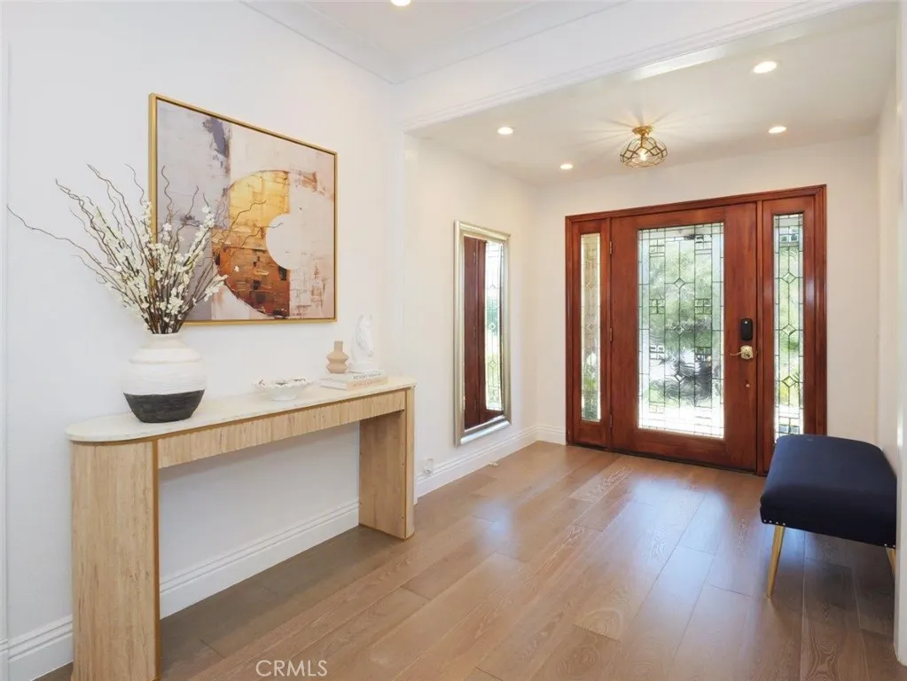 View! View!! View!!! Perched in the heart of Palos Verdes, this beautifully remodeled home showcases unobstructed, panoramic ocean view stretching from Catalina Island to Malibu, including a view of the iconic Queens Necklace. Enjoy breathtaking sunsets and twinkling coastline lights from both the interior and the private backyard, views that are truly rare and captivating. Meticulously renovated in 2021 and over the years, this turn-key residence boasts a new kitchen, 3 bathrooms, hardwood French Oak floor, double pane windows/sliding doors, modern barn doors, interior paint, lightings, a reimagined backyard and much more. These improvements spare the next owner the time and effort of remodeling, allowing immediate enjoyment of the home. A landscaped front lawn and inviting walkway lead to a high-ceiling foyer, opening to a living room with a cozy fireplace and an intentionally raised cathedral ceiling that enhances the sense of openness. The living room flows seamlessly into the dining room that connects to the remodeled kitchen, creating an ideal layout for both daily living and entertaining. The kitchen is thoughtfully designed with quartz countertops, custom cabinetry, and a large dining counter positioned to take in the ocean view. Nearby is a spacious family room, perfect for gatherings, relaxation, and enjoying the view, complete with a second fireplace and direct access to the backyard. A former fourth bedroom was incorporated to expand the family room and can easily be converted back into a bedroom or home office. A full bathroom on this level adds flexibility and