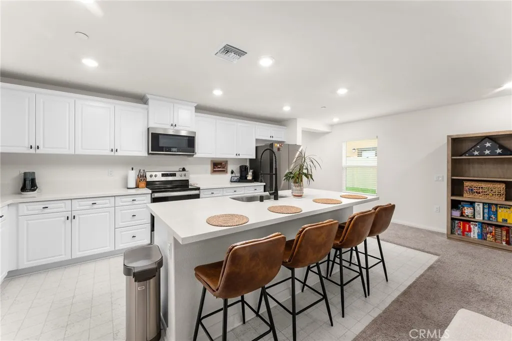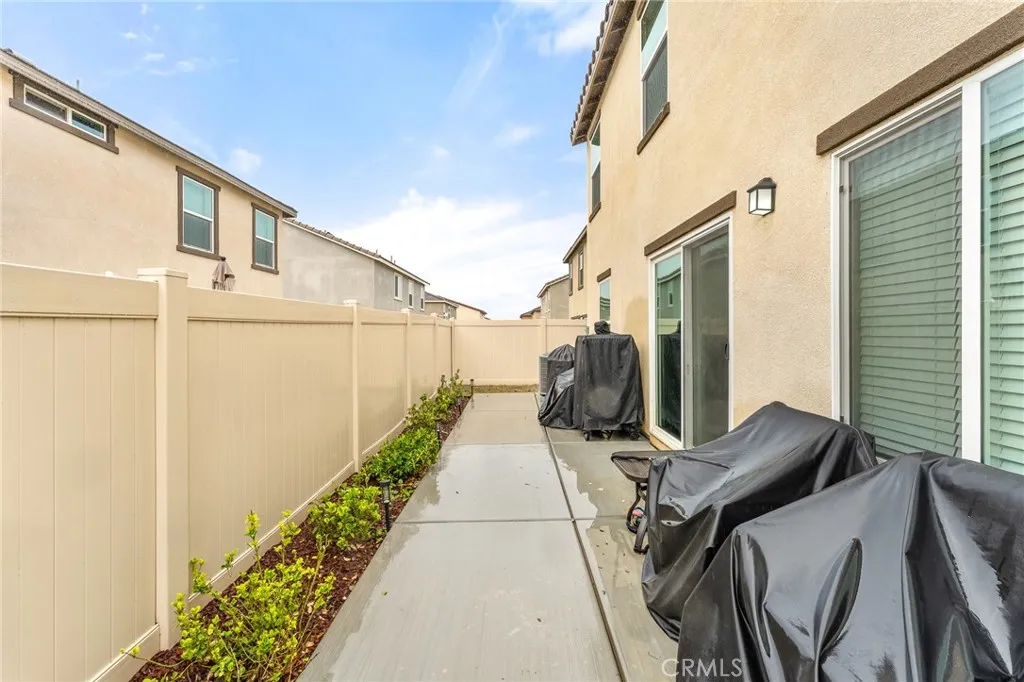 Welcome to this nearly new, energy-efficient home built just one year ago, located in a desirable newer construction community. This spacious 3-bedroom, 2.5-bath single-family home offers 2,145 sq ft of open-concept living and includes a dedicated home officeperfect for remote work or a flex space. The modern white kitchen features a large center island, ample cabinetry, and flows seamlessly into the living and dining areas, creating an ideal layout for entertaining. Additional highlights include an attached 2-car garage, solar energy system for lower utility costs, and a low-maintenance design buyers love. Enjoy a good-sized backyard with space for outdoor entertaining, pets, or future landscaping. Situated near planned community parks, this move-in-ready property offers easy access to shopping, schools, dining, and major commuter routes. If youre searching for a newer home in Nuevo, CA with solar, open floor plan, and a home office, this property checks all the boxes. Dont miss this opportunity to own a modern, energy-efficient home in a growing community in Nuevo