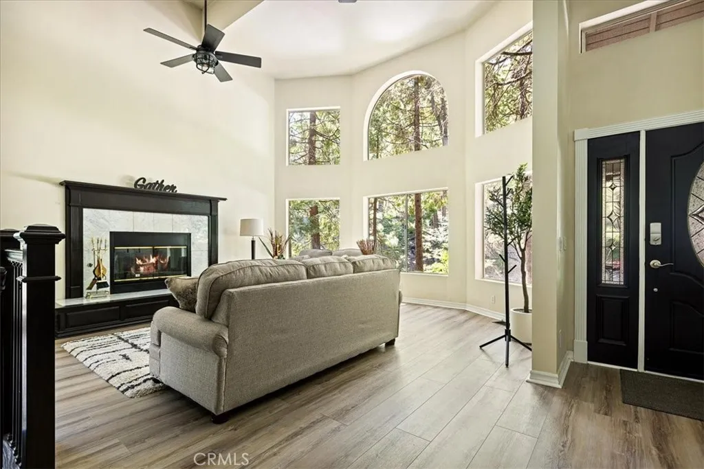 Fully Furnished Lake Arrowhead Retreat Ideal for those waiting for a construction project to get finished. Available NOW for Monthly Stays (or longer) 4BR | 4BA | 3,196 Sq Ft | Sleeps Up to 10. Enjoy all four seasons in this beautifully remodeled and fully furnished custom mountain home. Perfect for those in need of temporary housing from one month to one year. Nestled among majestic dogwood, cedar, and oak trees, this spectacular home features 4 spacious bedrooms, 4 bathrooms, multiple living spaces including a family room, game room/office, and a bonus entertainment level with separate entry - a potential guest suite. The main level living room welcomes you with a wall of windows, flooding the space with natural light and framing forest views. Relax by the wood-burning fireplace as you watch snowfall in the winter, enjoy cool summers, or enjoy the amazing colors of fall. The chefs kitchen is fully equipped with an island boasting a NEW LG Signature double oven dual-fuel range, and stainless steel chefs sink with filtered water. Each level of the home includes a cozy fireplace, new luxury vinyl plank flooring, and plush Shaw carpeting for added comfort. The master suite is a true retreat, complete with a sitting area, private deck, dual-sided fireplace, oversized NEW 6-ft Jacuzzi tub, walk-in double shower, and quartz-topped vanities. A vintage clawfoot tub highlights the main-level bath, adjacent to a bedroom with walk-in closet. Step outside to a furnished patio with a propane fire pitperfect for dining or lounging under the stars. The attached 2-car garage, level entry