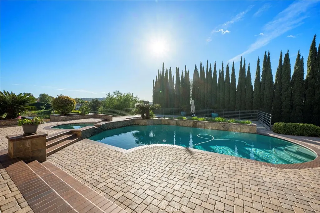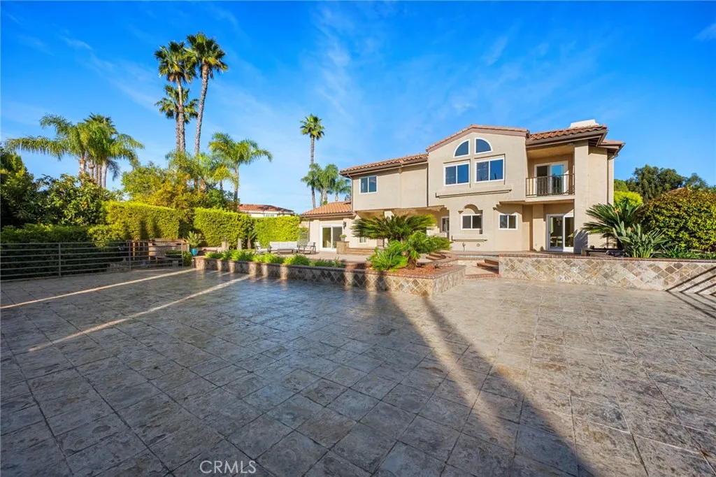 Experience elevated living in this extraordinary view estate, tucked away in a setting reminiscent of Anaheim Hills, where privacy, serenity, and natural beauty define everyday life. Set behind private gates on a sprawling half-acre lot, this exceptional property offers generous parking, complete seclusion, and panoramic vistas that create a true retreat from the city. Spanning more than 4,100 square feet of living space, the residence is thoughtfully designed to capture light and scenery at every turn. Dramatic two-story ceilings and expansive windows flood the home with natural light, enhancing the open, airy ambiance. With five bedrooms and five bathrooms, the layout blends refined elegance with everyday comfort. A grand double-door entry welcomes you into an impressive living room with soaring ceilings and a statement fireplace, seamlessly flowing into a spacious formal dining room ideal for hosting. A chefs kitchen is both stylish and functional, a center island, bar seating, and charming bay windows overlooking the backyard and rolling hills. A large separate family/recreation room offers the perfect gathering space, while a main-level bedroom with nearby bath provides ideal accommodations for guests. Upstairs, three generously sized secondary bedrooms complement a stunning primary suite complete with a private retreat, fireplace, and view balcony. The vaulted-ceiling primary sanctuary also boasts a fully reimagined spa-inspired bath adorned with custom porcelain tile, a soaking tub, oversized walk-in shower, dual quartz-topped vanities, and spacious his-and-hers wal
