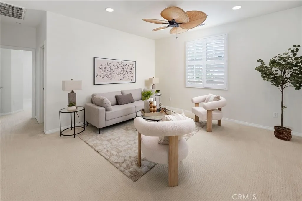 Welcome to this exceptional next gen home located close to the resort-style pool in the prestigious gated West Hills community of Valencia. This meticulously maintained residence features an attached private next gen home, offering ideal flexibility for multi-generational living, guest quarters, or a home-based business. The private-entry casita includes a kitchen, living room, bedroom, bathroom, and its own washer and dryerproviding comfort, privacy, and independence. The main home showcases a bright and open floor plan, with a spacious kitchen flowing seamlessly into the family room, complete with a cozy fireplace. The backyard is designed for both relaxation and entertaining, featuring lush landscaping, a patio area, built in BBQ, spa and an outdoor fireplace not to mention the scenic surroundings. Upstairs, the primary suite offers a peaceful retreat with beautiful views, a walk-in closet, and a well-appointed en-suite bathroom with dual sinks, a soaking tub, and separate walk-in shower. Two additional bedrooms share a dual-sink bathroom, while a versatile loft (optional fourth bedroom), built-in tech center, and convenient upstairs laundry room add functionality. Additional upgrades include Tesla charging station, lots of added garage storage, interior freshly painted, updated light fixtures in the kitchen and dining, wood flooring, crown molding, shutters, multi-zone HVAC, and a tankless water heater. Ideally located near award winning schools, parks, multiple community pools, shopping, dining, and highly regarded local amenities, this home offers a rare combination o