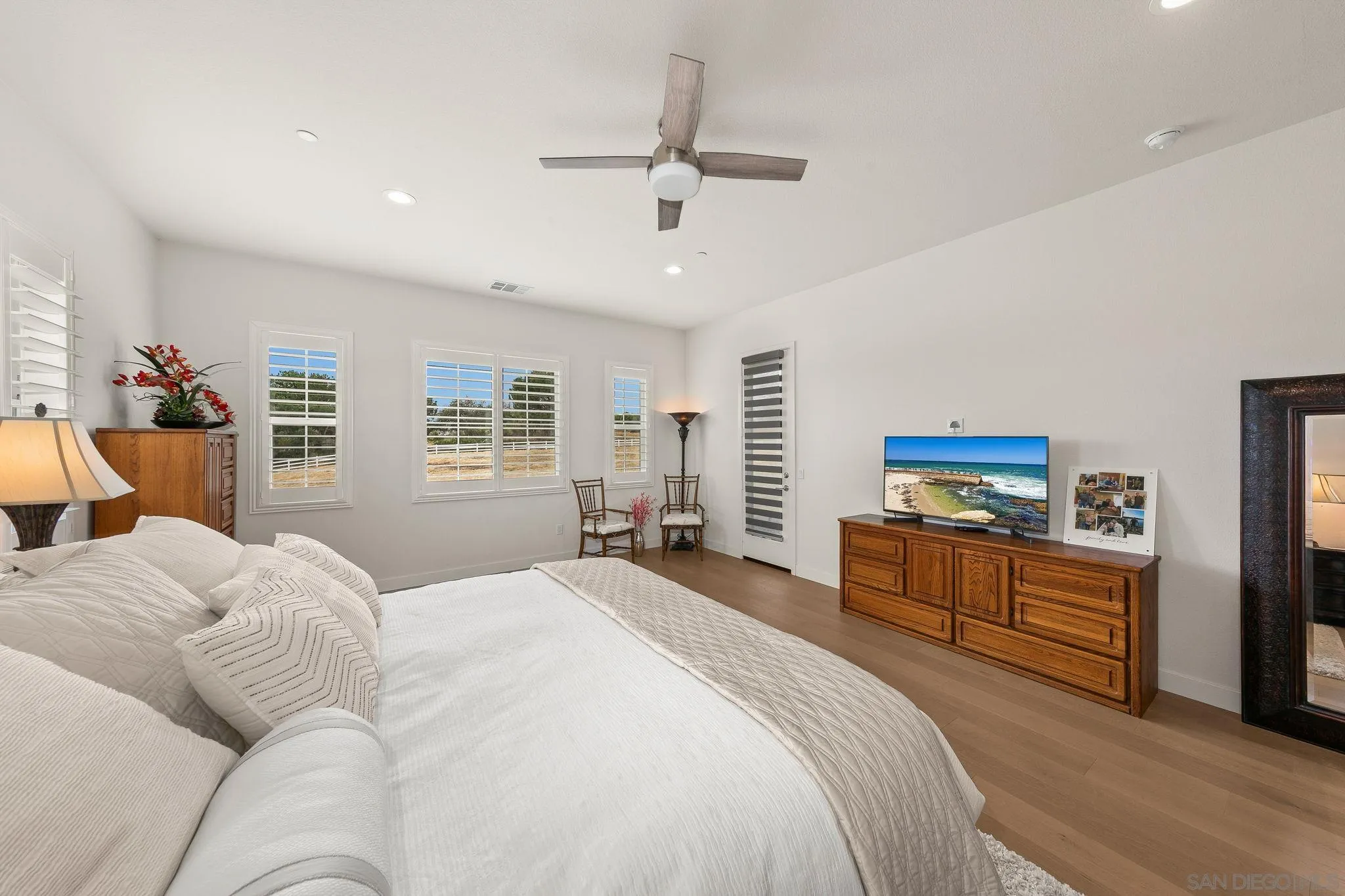 Welcome to your private country retreat in desirable Valley Center! This inviting single-story home offers **3,307 square feet** of comfortable living space on a generous 2.41-acres - perfectly blending peaceful rural living with modern convenience. Boasting 4 spacious bedrooms and 3 1/2 bathrooms, this thoughtfully designed residence provides ample room for family, guests, or a home office. The single-story layout ensures easy, one-level living with upgraded engineered wood & tile floors, ideal for multi-generational households or those seeking accessibility. The ensuite guest room has it's own private entrance. Inside, you’ll find a stunning chef’s kitchen featuring upgraded JennAir appliances, perfect for the home cook or entertainer. Additional highlights include owned solar with two Tesla backup batteries for energy efficiency and peace of mind, and a spacious four-car garage. The entire property is fully fenced and was built in 2023, ensuring modern construction and privacy. This property delivers endless possibilities: room for a private gardens, fruit trees, a future pool or outdoor kitchen, horses, or simply enjoying wide-open space and stunning valley views under the Southern California sun. This property captures the essence of Valley Center living—spacious, serene, and full of potential. Located in one of North County's best-kept secrets, you're surrounded by rolling hills and a relaxed equestrian-friendly lifestyle, yet remain conveniently close to Escondido and major highways, as well as San Diego county attractions such as award winning wineries and casinos.