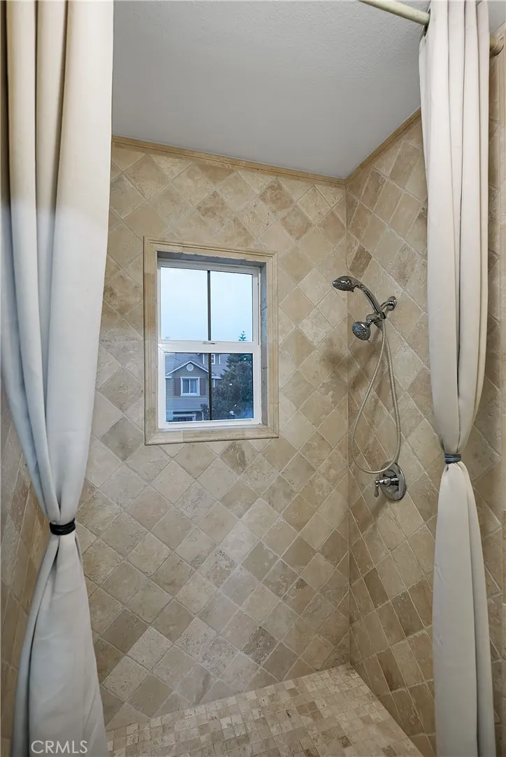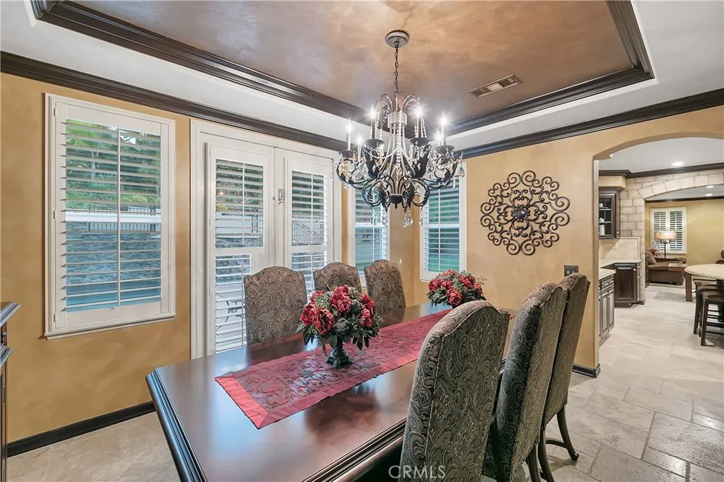 Welcome to this beautifully upgraded two-story home located in the highly sought-after Tesoro community. From the moment you enter, youre greeted by a grand formal entry with mosaic tile flooring and an elegant formal living and dining area highlighted by Versailles travertine flooring and custom faux and Venetian plaster finishes. The stunning chefs kitchen serves as the heart of the home, featuring granite countertops, Omega cabinetry, a double oven, and a 4-burner cooktop with griddle, all opening to a warm and inviting family room with a stone fireplace, crown molding, and designer accents throughout. Upstairs, the spacious primary suite offers dual crown molding, a comfortable sitting area, and a spa-inspired bathroom complete with separate vanities, a soaking tub, and a rain shower. Three additional upstairs bedrooms provide ample space, while a downstairs bedroom suite, thoughtfully converted from the third garage with its own private entrance from the front courtyard, offers flexibility for guests, multigenerational living, or a private office. Additional highlights include a beautifully upgraded downstairs bathroom with tiled shower and an upstairs laundry room with sink and folding station. Step outside to your own private resort-style backyard featuring a sparkling pool with Baja shelf and slide, a raised spa, covered patio with gas fireplace, built-in BBQ with granite counters, elevated seating deck, and a separate firepit area, perfect for entertaining or relaxing year-round. The meticulously landscaped grounds are enhanced with Malibu lighting, creating a warm