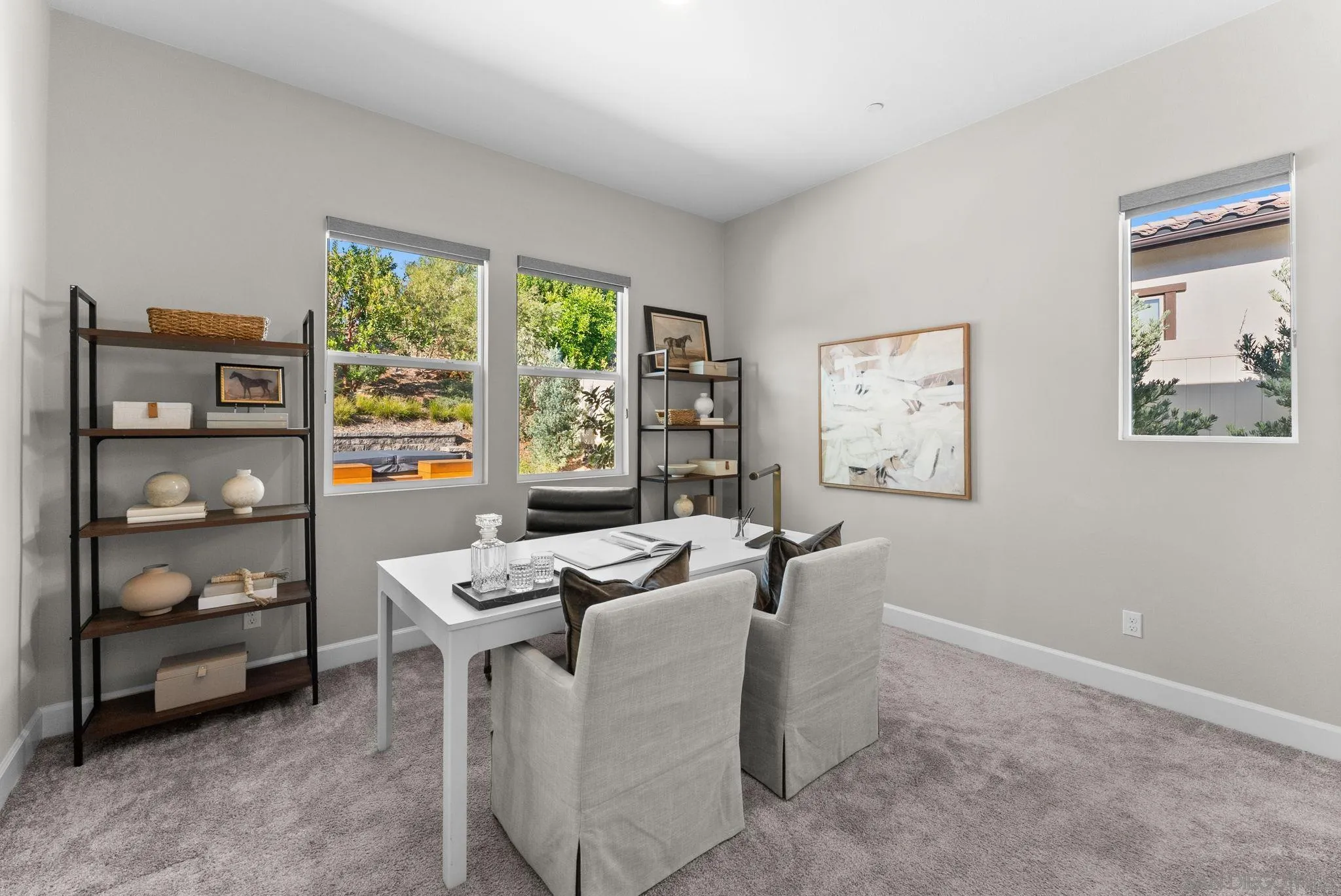 Situated within the highly sought-after Harmony Grove Village, this single-story residence offers a rare combination of thoughtful design, elevated finishes, and extensive upgrades. Set against scenic mountain ridgelines and a lifestyle centered around outdoor living, the home embodies both comfort and sophistication. Offering four generously sized en-suite bedrooms, an optional room, expansive living spaces, a three-car garage, and seamless indoor-outdoor living. The great room is anchored by 12-foot ceilings and stacked doors that open to a stunning outdoor water feature, creating a serene gathering space that connects effortlessly to the heart of the home. The kitchen is designed for both everyday living and entertaining, featuring an oversized island, premium appliances, and both walk-in and butler’s pantries. The California Room is equipped with a fireplace, TV hookups, ceiling fan, and recessed lighting. The grounds have been extensively improved with curated landscaping, hardscape, a custom putting green, private hot tub, and lush greenery. Additional upgrades include expanded solar with Tesla Powerwalls, upgraded HVAC, whole-house water filtration, custom built-ins, enhanced lighting, and smart features throughout. Harmony Grove Village offers access to trails, parks, equestrian amenities, and The Grove with a pool, spa, and outdoor gathering spaces. A rare opportunity to own one of the most extensively upgraded homes of its kind.