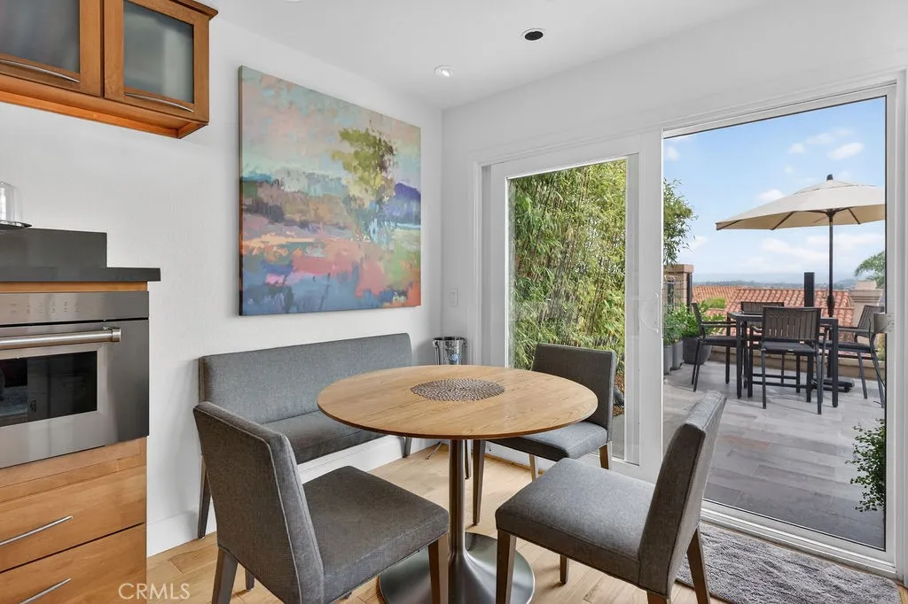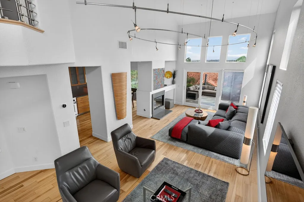Welcome to your dream home in the coveted Niguel Summit! An exceptional end-unit residence filled with abundant natural light and showcasing breathtaking panoramic views of the ocean, mountains, and sparkling city lights. Extensively remodeled with a designers eye, the home has been thoughtfully reimagined into an open concept living space, creating seamless flow and striking details. A custom concrete fireplace and statement staircase anchor the space, while frosted glass doors and curated lighting throughout add a refined, contemporary edge. At the heart of the home, the gourmet kitchen is a true showpiece. Fully redesigned with custom cabinetry, quartz countertops and backsplash, imported Italian fixtures, and a sleek stainless steel sink. Outfitted with high-end appliances, including a Wolf dual-fuel range and Wolf speed oven/microwave, this kitchen blends elevated design with everyday functionality. The primary suite offers a private retreat, featuring a beautifully redesigned ensuite bath with a spa tub and shower, custom cabinetry, premium fixtures, and a California Closets system. The secondary bedroom is equally well-appointed with custom built-in cabinetry and a Murphy bed, plus an upgraded bath with rain shower and elegant finishes. Additional highlights include hickory-engineered wood flooring throughout, custom baseboards, silhouette blinds, and custom shutters. Modern living is effortless with integrated smart home features, an audio visual system, and Nest-controlled climate and lighting. Step outside to your private patio, with ocean views, beautiful surroun