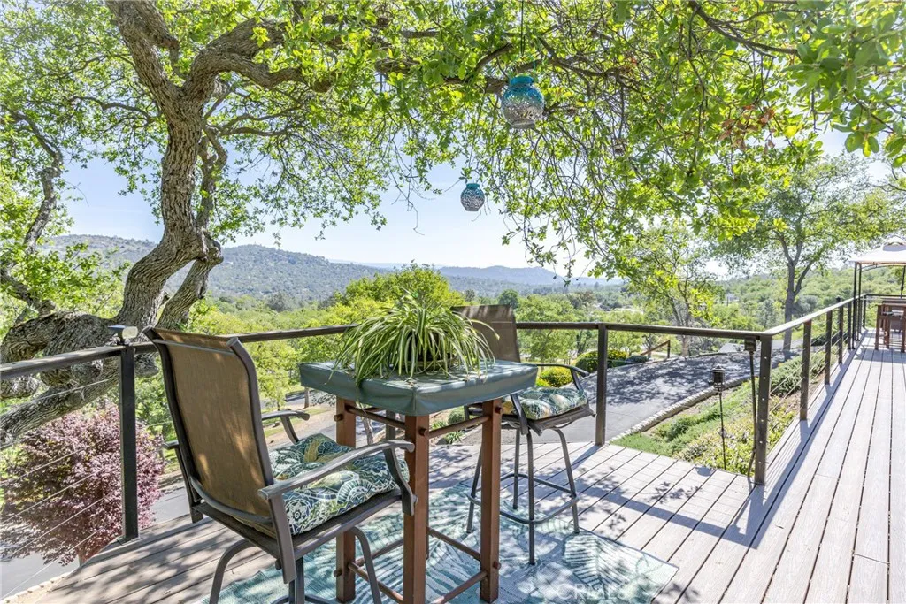 Located in the highly desirable Yosemite Lakes Park, this exceptional property offers privacy, quality, and unmatched views near the top of the mountain. An immaculate, manicured driveway lined with retaining walls and landscaping welcome you to this estate-style home featuring covered RV parking for two rigs, a side carport, and two storage sheds (10x6 and 7x7). Enjoy breathtaking, million-dollar views from the expansive low-maintenance composite front deck with railing spanning the entire front of the home. The rear features a finished porch with patio covering, LED lighting, metal roofing, and rain gutters extending across nearly the full length of the house. Inside, you'll find extensive updates throughout, including custom barn doors, a remodeled kitchen and bathrooms, new Karndean LVT flooring throughout, and an EPA-compliant wood-burning stove. The home is equipped with owned solar free and clear for added efficiency. A rare opportunity this is truly one-of-a-kind within Yosemite Lakes Park.