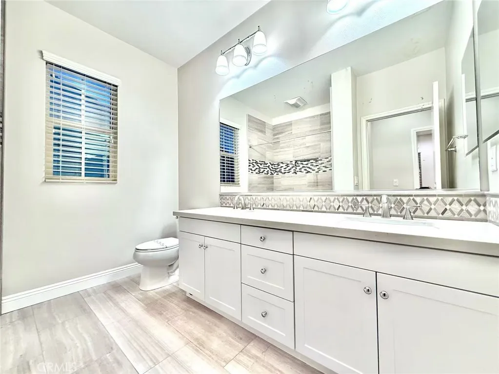 This stunning upgraded detached home features 3 bedrooms, 2.5 bathrooms, and a 2-car garage ready for immediate move-in! Enjoy brand new custom paint and bright LED lighting throughout. The home includes a refrigerator, washer, and dryer for your convenience. The gourmet kitchen boasts gorgeous granite countertops, stainless steel appliances, a natural stone backsplash, and a large island overlooking the spacious living room with laminate flooring. The master suite offers a relaxing retreat with a spacious walk-in closet and a luxurious bathroom featuring high-quality natural stone tiles. All three bedrooms are equipped with LED recessed lighting, and theres a convenient upstairs laundry room plus plenty of closet and storage space throughout. The backyard provides ample space for entertaining family and friends. Located in the upscale community of Stonegate, residents enjoy resort-style amenities including a sport court, pool, BBQ area, pet-friendly parks, and more. The home offers easy access to toll roads and freeways, and is close to Great Park, Jeffrey Open Space Trail, Woodbury Town Center, and top-rated schools in the award-winning Irvine Unified School District.