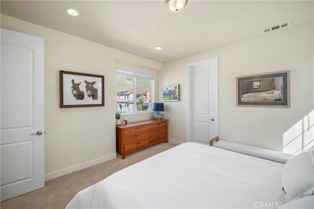 Italian-inspired residence in the Toscano community. Nestled among the picturesque South Hills Open Space, this timeless enclave of homes enjoys views of surrounding mountains, tranquil hiking trails, and convenient access to vibrant downtown San Luis Obispo, the Public Market, Trader Joes, and the SLO County Regional Airport. Offering three spacious bedrooms and three luxurious baths, this Lambrusco plan provides approximately 1,567 square feet of thoughtfully designed living space. Perfectly positioned to embrace the areas natural beauty and the sought-after SLO lifestyle, the home exudes comfort and style. Upon entering the inviting floor plan, youre welcomed by upscale finishes including luxury vinyl plank flooring, smooth trowel-finished walls, window coverings, and 8-foot doors. The living room is a comfortable space centered around a cozy Heat & Glo fireplace with a precast concrete surround and mantelideal for unwinding after wine tasting in Edna Valley or a day at Avila Beach. The designer kitchen is an entertainers dream, featuring an expansive island with bar seating, pendant lighting, and granite slab countertops. Premium alder cabinetry with soft-close features, LG appliances, a walk-in pantry, and an adjacent dining area with a striking hanging fixture create an ideal setting for gathering with friends. The private owners suite offers a peaceful retreat with breathtaking mountain views, a walk-in closet, and a tastefully upgraded bathroom with dual sinks, granite countertops, and a curbless walk-in shower with a frameless enclosure and tiled surround. Two seco