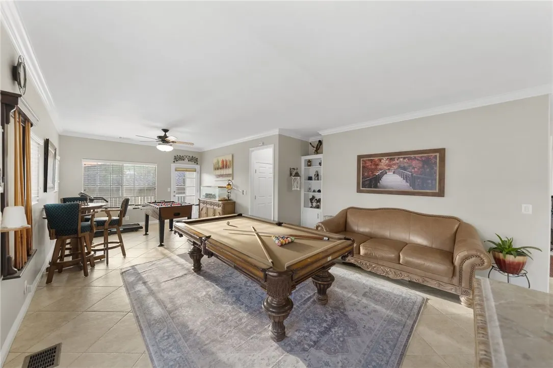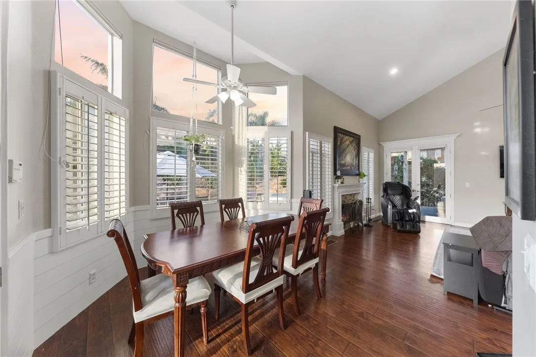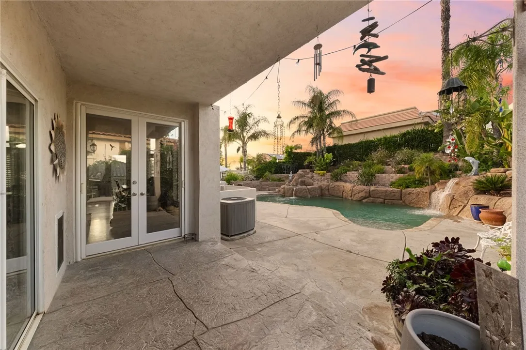 Welcome to this stunning POOL/SPA home located in the highly desirable, guard-gated community of Canyon Lake. Situated on a large, private lot on a quiet street, this expansive residence offers 4 Bedrooms PLUS a dedicated office, 4 Bathrooms and a 3-car garage! Designed for both comfort and entertaining, the home features multiple covered patios, including a front-facing patio, a side patio, and dual backyard access points. Enjoy your own private retreat with a secluded patio and a spacious deck off the primary suite. The open and inviting kitchen is equipped with granite countertops, ample cabinetry, a walk-in pantry, and large windows adorned with plantation shutters, filling the home with abundant natural light. The main level showcases beautiful wood flooring, while the upstairs features stylish LVP flooring throughout. Upstairs, youll find three additional bathrooms, including a fully remodeled primary bathroom complete with a freestanding soaking tub, oversized walk-in glass shower, white cabinetry, shiplap accent walls, and modern black finishes. No more lugging your laundry downstairs, this home features your very own laundry chute! Step outside to your resort-style backyard, featuring a sparkling pool and spa with dramatic double waterfall features, a built-in barbecue island with refrigerator, and breathtaking sunrise and sunset views. Located in the heart of Canyon Lake, residents enjoy 24-hour guard-gated security and access to an array of amenities including boating, fishing, water sports, parks, community events, equestrian facilities, and multiple sports cour