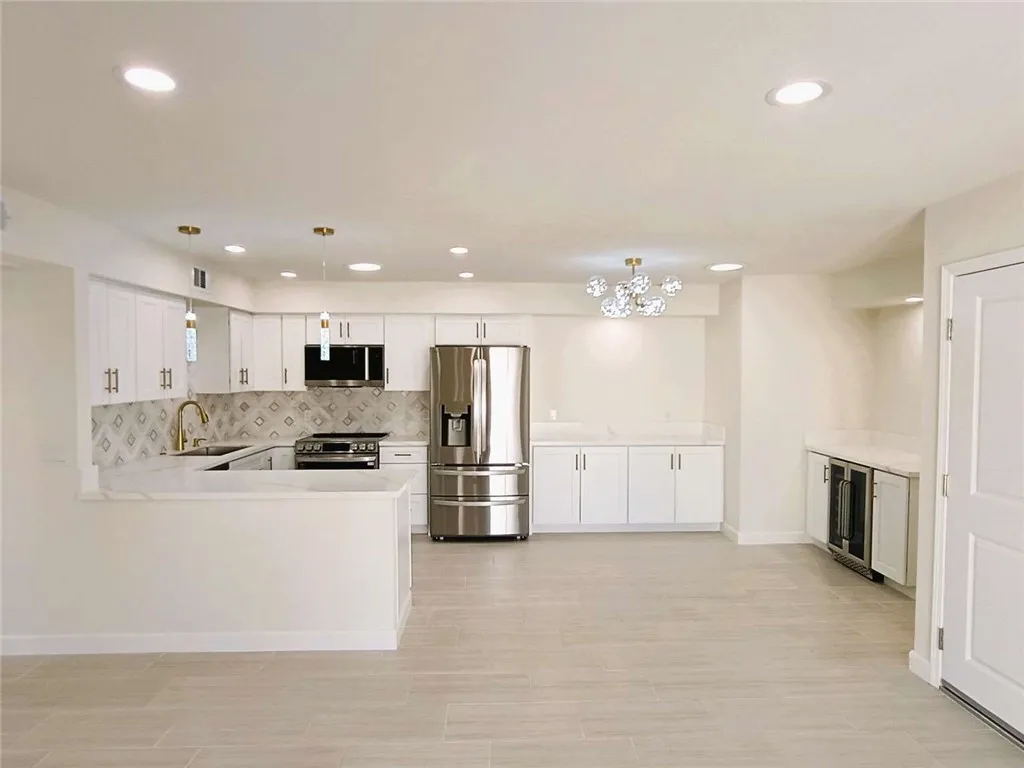 EMAZING SINGLE STORY CONDO WITH EMAZING PALM SPRINGS MOUNTAIN VIEWS WITH LARGE BACKYARD WITH TWO SEPARATE SEATING AREA AND TWO LARGE SLIDING DOORS BRINGS IN PLANTY NATURAL LIGTH. 1-completely renovated top to bottom inside out with two separate seating area 2-entire flooring are ( porcelain ) durable tile 3-all counter tops are ( QUARTZ ) 4-Quality fixtures ceiling fan for all bedrooms 5-natural stone and ( marble ) in the shower 6-amazing kitchen ( marble backsplash inlaid with gold color metal ) 7-all kitchen and bathroom cabinet are ( wood ) 8-all appliances are ( LG BRAND ) also includes ( washer and dryer ) 9-single car garage , laundry inside the garage 10-large backyard very privet feels like a house 11-large master bedroom with walking closet 12-bar area and wine cooler 13-all lights are ( ENERGY SAVING LED ) 14-with minimal maintenance backyard 15-skiyligths in the kitchen bathroom and dinning 16- THIS IS ALL BRAND NEW.