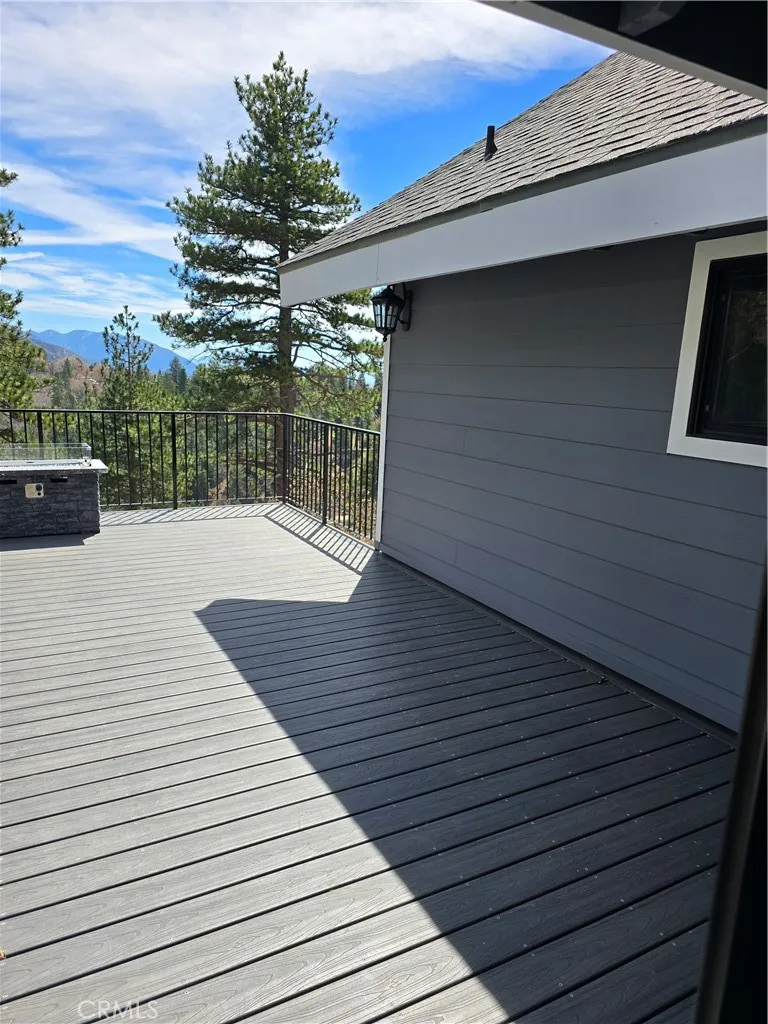 Mountain chalet estate situated on approximately 6.80 acres with expansive valley and mountain views, city lights, and the Pacific Ocean. near Running Springs and Snow Valley Ski Resort. Offering approximately 4,300+ sq ft of living space, this lodge-style home features a spacious open-concept great room with vaulted tongue-and-groove wood ceilings, exposed beams, and large windows that capture natural light and the priceless scenic vistas. The residence includes 6 bedrooms, 5 bathrooms, along with multiple living and entertaining areas. The updated kitchen features a large center island, farmhouse sink, stainless steel appliances, ample cabinetry, and extended counter space with unique quartz countertops with views. Additional interior highlights include a game room with a billiards area, bar space, and a remodeled bathroom with a soaking tub and a walk-in shower, and a rustic rock fireplace. Also, electrical updates, including a full solar system. newer heating/cooling high-efficiency system. Outdoor features include expansive decking and patio areas designed to take advantage of the surrounding priceless views, as well as an oversized two-car garage and extended driveway providing plenty of parking. The property consists of separate parcels, offering the potential for expansion, additional structures, or other uses (buyer to verify). Recent improvements include updated interior finishes, flooring, paint, plumbing (PEX), and roof. The grounds offer a natural setting with mature pine, oak, and cedar trees across gently sloping terrain. The current owners lovingly reimagine
