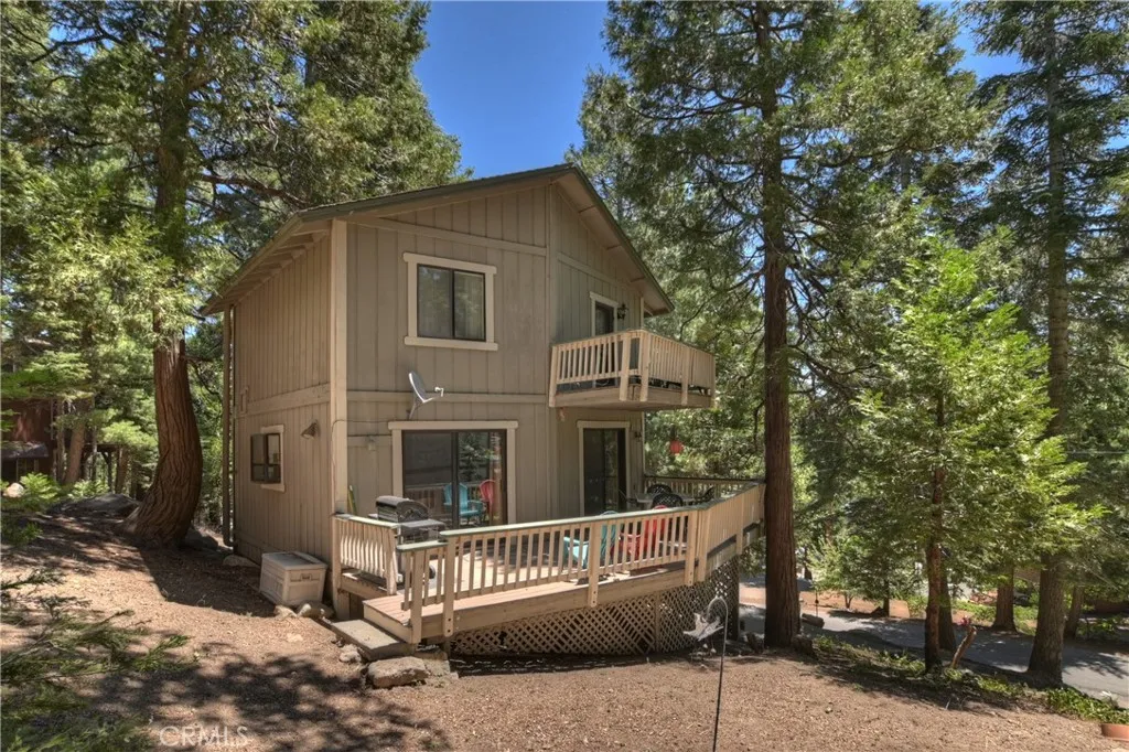 Escape to this mountain charming cabin in a peachful shady setting close to the little town of Twin Peaks. Warm and welcoming. One big fun living area so you don't have to miss out if your family or friends are working a puzzle by the wood burning fireplace or watching your fave TV show. Serve up the guests on the outside deck and enjoy nature. Full-sized washer and dryer conveniently located on main level. Guest bath on main level. 2 nice sized bedrooms upstairs and a full bath. Beautiful wood flooring adds charm and character. The natural pine tongue & groove add to the mountain ambiance. One upstairs bedroom has a balcony. Covered front porch. Build-up area is easily accessible and offers some good storage. Up slope with off-street parking for several cars. Good year round access to Hwy 189 and Hwy 18 down to San Bernardino or into Crestline. Come on up for some fresh air and privacy.