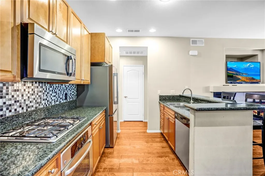 Welcome to the gated community of Brookview Terrace. This highly sought-after floorplan rarely hits the market, offering a unique opportunity to own a move-in ready home in a prime Canyon Hills location. One of the best-priced homes within the community, this turnkey 2-bedroom, 2.5-bathroom residence is designed for modern living. The main level features high-quality wood flooring and a spacious living area with a cozy gas fireplace. The gourmet kitchen is equipped with granite countertops, a designer mosaic tile backsplash, stainless steel appliances, a gas cooktop, and an open breakfast bar. The second floor is designed for maximum convenience, featuring a versatile loft area with a built-in workstation and cabinets, along with a dedicated laundry room. The large primary bedroom includes an en-suite bathroom with dual sinks, a separate soaking tub, a walk-in shower, and an oversized walk-in closet. The secondary bedroom also features its own private en-suite bathroom. Additional highlights include a private front porch and a direct-access, attached 2-car garage. Residents enjoy resort-style amenities within a secure environment, including a community pool, spa, and clubhouse. Located within walking distance to shopping and dining at Canyon Hills Marketplace and offering easy access to the 15 freeway, this home truly has it all.