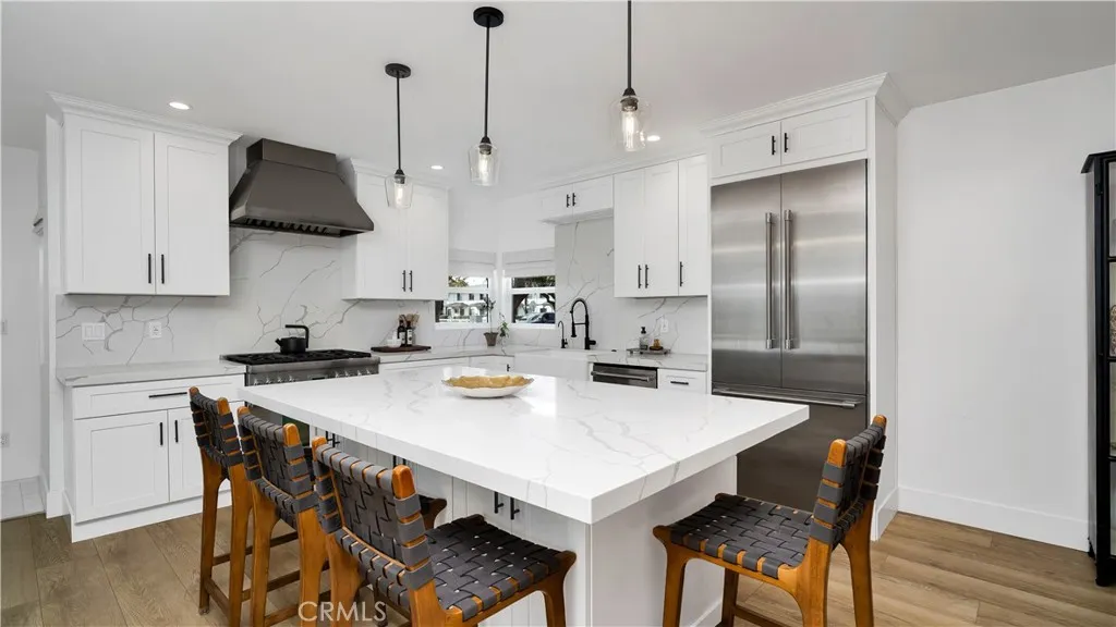 Rarely does a property emerge that perfectly captures the essence of Eastside Costa Mesa luxury while offering the rare scale of an 8,712 sq. ft. parcel. 308 E 18th Street is a contemporary showpiece defined by its substantial estate footprint, standing out as a premier find in this coveted coastal enclave. The grounds' versatility creates a serene sense of privacy and provides a limitless canvas for a sophisticated outdoor lifestyle. Imagine this space as the ultimate stage for premier entertaining: a custom outdoor pavilion for year-round lounging, a sun-drenched alfresco dining area for long summer evenings, and the glow of string lights creating a magical ambiance for hosting under the stars. Whether you dream of a professionally landscaped garden retreat or a high-end social hub, this expansive land offers a level of creative freedom that is rare in the area. This sense of refinement continues indoors, where the home has been thoughtfully reimagined to balance modern architecture with bespoke comfort. The heart of the residence is an open-concept chefs kitchen, fully equipped with professional-grade Thermador appliances and a generous social island designed for grand-scale hosting. New, upgraded flooring flows seamlessly into the light-filled living area, anchored by a stunning, redesigned focal-point fireplace. The transition to the second level leads to a primary suite that serves as a true sanctuary. This private retreat features a balcony, a newly added linear fireplace for a sleek modern touch, and a resort-like bath complete with a soaking tub and steam shower fo