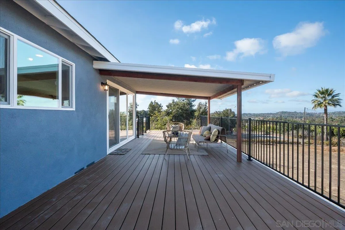 Lovingly restored single-level '60's ranch-style home on just under 3/4 of an acre. This special property captures the charm of a bygone era while offering modern comfort and efficiency. Located in a tranquil pocket of rural North San Diego County it offers a peaceful “off-the-grid” feel yet remains close to shopping, dining, and major conveniences. Upgrades include solid quartz countertops, custom cabinetry in the kitchen and baths, new appliances, vinyl plank flooring, new tankless water heater, new central HVAC system and an upgraded electrical panel. An oversized laundry room, new windows, doors, fresh interior and exterior paint, new stucco, new trim and baseboards, and an expansive new deck are additional design elements. The lot offers endless potential—room for one or more ADUs, RV parking, a dream pool, or a garden retreat. A beautifully updated piece of North County history—move-in ready and designed with the next homeowner in mind.