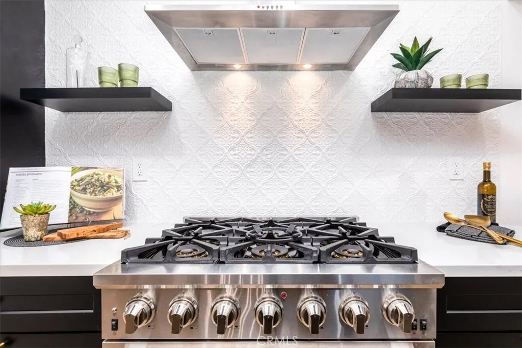 Welcome to this stunningly transformed Spanish Revival home in the heart of hottest neighborhoods in LA - Larchmont Village. , where timeless character meets modern upgrades. This thoughtfully reimagined property offers warm, inviting spaces Step into a front yard adorned with new sod and carefully selected plants, setting the stage for the serene retreat that lies beyond. The rear yard is framed by lush hedges, creating a private oasis perfect for entertaining or relaxing. A long driveway adds extra off street parking. Inside, the light-filled living and dining areas feature natural light streaming through new dual-glazed, low-e windows. New LVP hardwood floors anchor the open-concept spaces, while all new fixtures add a curated sense of style. The custom kitchen is both beautiful and functional, with marble like quartz countertops, a statement tile backsplash, and self-closing cabinetry. Stainless steel appliances, including a gas range, dishwasher, and large kitchen island make this space a dream for cooking and entertaining. The conveniently placed laundry room off the kitchen ensures everyday tasks are effortless with additional cabinet for extra storage. The two bedrooms are light and bright and offer a relaxing place to unwind at the end our our day. The remodeled bathroom features sophisticated tilework,, blending artistic design with modern luxury. Extensive system upgrades ensure this home is as functional as it is beautiful. A new HVAC system and new ducting ensures year-round comfort. The home also boasts updated plumbing, including a new tankless water heater,