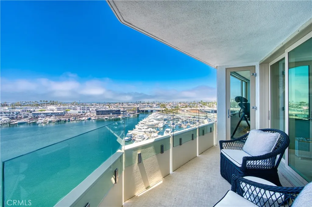 Enjoy endless views of the Newport Harbor, Ocean, Palos Verdes to Emerald Bay and Catalina Island all from your double balconies and interior views from the 7th floor at Newport Towers. This property was completely gutted in 2019 and designed for gracious living with every amenity you would expect. Gourmet kitchen with top of the line appliances from Thermador. The spacious ocean blue peninsula can seat your guests while enjoying the views and the surrounding beauty. The custom walk behind bar is always a huge draw for friends and neighbors to converse and enjoy beverages from the Wine Tower and undercounter beverage refrigerator and ice maker. The large living room is quite spacious with views of the bay and ocean. The large dining room seats 8 comfortably and there is deck seating for up to 8 as well with ceiling heaters for cooler nights. Enjoy the fire pit while you watch the yachts go by and the stars twinkling! The primary bedroom was enlarged bed size and boasts a sitting area with panoramic views or enjoy conversation with those on the deck. The sliders part to include the outside space! The primary bathroom is marble with a walk-in shower, 9 drawer vanity with Keuco Royal lighted medicine cabinets and more. The guest room side of the property fits a queen bed with panoramic views of the whole coastline, a closet and guest bath with walk-in stone shower, vanity and storage cabinet. On the Primary side there is another bedroom currently an office. Walk to Lido Marina Village and 5 exceptional restaurants. This one of a kind residence will not last long.