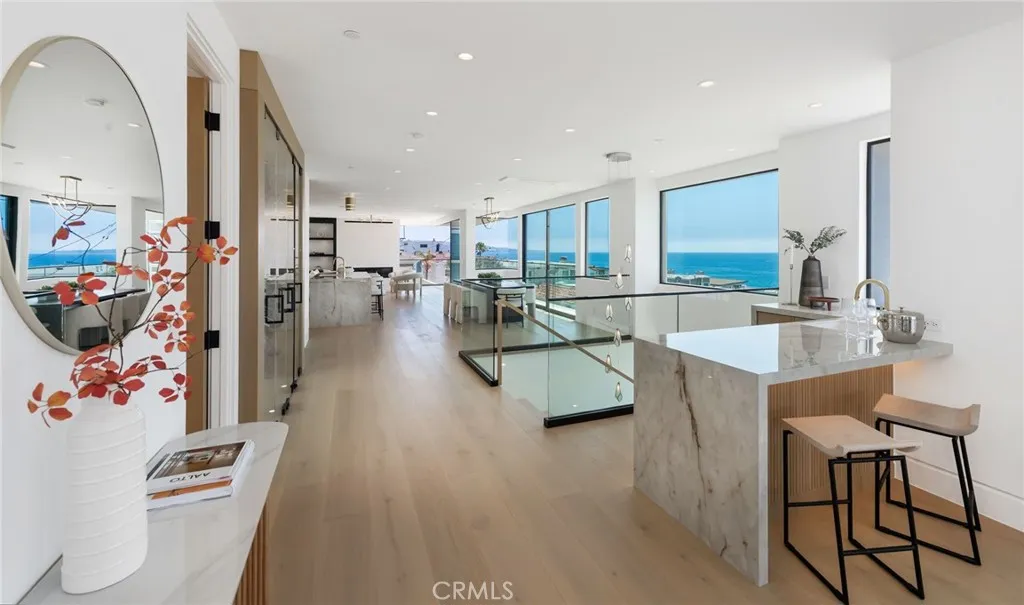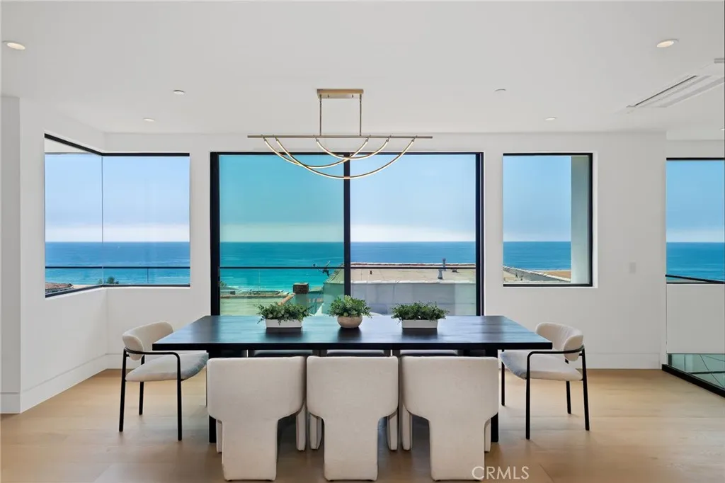 Introducing an unparalleled coastal masterpiece where modern elegance meets breathtaking ocean and whitewater vistas that must be seen to be believed. Situated on a prime corner lot with 4322sf of living space, this newly constructed residence seamlessly blends indoor and outdoor living spaces for ultimate Southern California luxury. Almost all of the 84 ocean-facing feet of the upper level are framed by Fleetwood doors and windows which truly capture the stunning panoramic ocean views from Palos Verdes and Catalina Island all the way to Malibu. This is by far one of the finest homes built in Manhattan Beach! The gourmet kitchen, equipped with state-of-the-art appliances and white oak cabinetry, flows effortlessly into the spacious living and dining areas, making it perfect for both intimate gatherings and grand entertaining. The primary suite serves as a spa-like sanctuary, featuring a steam shower, Venetian plaster walls, two-sided fireplace, and a generous walk-in closet. Additional four junior suites are masterfully designed, each with en-suite bathrooms and ample closet space. The expansive decks provide a serene setting for sunset views over the ocean, while the outdoor living area on the walkstreet offers ultimate relaxation and entertainment. Situated just steps from the beach, this property provides convenient access to upscale dining, boutique shopping, and top-rated schools. The corner location of this home allows for the key advantages of capturing up to 2 extra feet of width for the home, much more natural light, and much better views. Additional features inclu