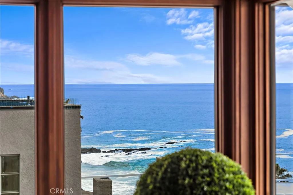 A Seacliff architectural masterpiece nearly oceanfront with deeded beach access, formerly owned by Charlie Chaplin. Four years in the making, this newly reconstructed historic Laguna Beach Craftsman cottage pays respectful homage to its original design while being thoughtfully reimagined with modern engineering, elevated materials, and coastal elegance. Set on an elevated parcel within the Seacliff community adjacent to its oceanfront neighbor, the home enjoys rare commanding panoramic ocean views spanning from Palos Verdes Peninsula, across Catalina Island, and down to Three Arch Bay. Only an estimated three percent of ocean close Laguna Beach homes offer both up coast and down coast views from well within the interior. Beyond a gated entry, a beautifully designed outdoor living space blends seamlessly with the interior, ideal for alfresco dining, morning coffee, or sunset cocktails overlooking the Pacific. With rare direct deeded access to Table Rock Beach just 30 feet from the front door via gated stairs, the ocean is truly at your feet, with sunsets and ocean views from nearly every room. Garages are located at street level with main and upper living spaces above, each offering ocean views. While select original studs were preserved to retain grandfathered benefits, the home is otherwise newly constructed and modernized, including a new foundation, steel beams, and updated systems. The main level features a spacious living room, dining area, and open concept chefs kitchen with Bertazzoni appliances, Blanco sinks, and imported Dekton countertops, along with a walk in pan