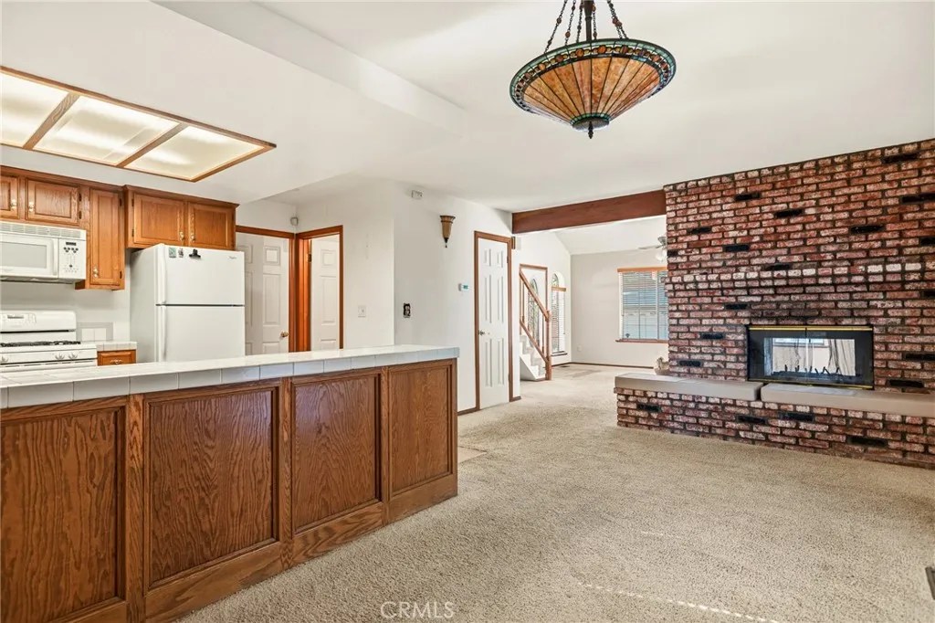 Beautiful 3-bedroom, 2.5 bath home! The spacious layout features an open-concept living room flowing into dining room, perfect for both everyday living and entertaining. Stunning brick fireplace that opens to the living room and dining room adds warmth and charm, creating a cozy atmosphere. There is an insulated attic with pull down ladder, sheeted with plywood. The upstairs bedrooms are all a nice size, with lots of crown molding and natural oak. Primary bedroom has a large full bathroom and large walk-in closet. Large Trex decking are perfect for entertaining. The home is equipped with central air conditioning and forced air heating for year-round comfort. Home has vinyl siding for lower maintenance. The large double car garage is heated and has direct access to home. Large, covered storage garage for RV parking with electrical hook-ups. Home sits on a large level lot with a circular driveway. Included with home is a generator, snow blower and all the appliances plus more. Located in a friendly neighborhood and close to shopping, post office, bank, hiking trails, and snow valley ski resort. In the Hub of the San Bernardino Mountains.
