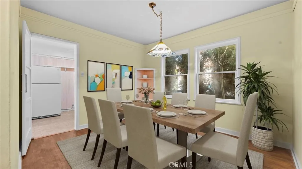 This charming vintage cottage bungalow is a rare blend of timeless character, thoughtful updates, and an inviting lifestyle setting. Located in one of San Bernardinos established and desirable north-end neighborhoods, this residence offers classic architecture paired with everyday comfort. Inside, hardwood floors and darling original details set a warm and welcoming tone. The living room features a cozy fireplace that anchors the space and creates a natural gathering point. A dedicated dining area adds both function and charm, while the spacious kitchen offers ample room for entertaining and daily living. An indoor laundry area adds modern convenience without sacrificing character. Both bedrooms are well proportioned, and the full bathroom reflects the homes enduring appeal. Recent improvements enhance peace of mind and efficiency, including a newer roof, HVAC system, water heater, and upgraded electrical panel, all completed within the past several years. Outdoors, the property truly shines. The front and rear yards have been lovingly cultivated into a lush garden retreat, ideal for those who appreciate outdoor living. A quaint front porch invites quiet mornings, while the covered brick patio in the backyard creates a serene space for dining, relaxing, or entertaining amid mature greenery. A detached two-car garage provides generous parking and storage, and the expansive backyard offers flexibility for future use. The location is equally compelling. Enjoy convenient access to local dining, neighborhood amenities, and nearby walking areas. The home is ideally situated near