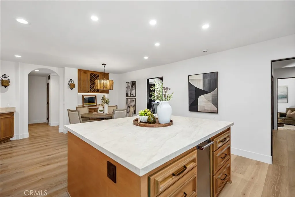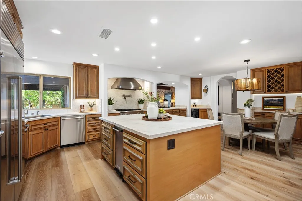 An exceptional private estate defined by timeless Spanish Colonial Revival architecture, bespoke design elements, expansive grounds, and resort-inspired living in one of San Juan Capistranos most desirable settings. Surrounded by approximately 22,000 square feet of beautifully curated grounds, the property blends classic design, impressive scale, and effortless indoor-outdoor living. A dramatic double-height foyer and sweeping curved staircase introduce interiors rich in character and craftsmanship. Vaulted and beamed ceilings, custom millwork, elegant lighting and brick accent walls create a warm yet refined atmosphere, while wide-plank wood flooring flows throughout the homes main living areas. Now beautifully reimagined, the chefs kitchen serves as the centerpiece of the residence. Anchored by striking Taj Mahal surfaces and an oversized island designed for gathering, the space offers generous storage, refined lighting, and an expanded pantry. Premium Thermador appliances including a six-burner range and dual dishwashers support both everyday living and entertaining. The kitchen flows seamlessly into the inviting family room with fireplace and French doors opening to the backyard. The thoughtfully designed floor plan offers exceptional flexibility with a spacious main-level suite featuring patio and fountain access. Also on the main level, a generous dual office suite provides versatility and could convert to an ensuite bedroom. Upstairs, the luxurious primary retreat features a sitting area with beverage refrigerator, fireplace, and private balcony capturing beautiful h