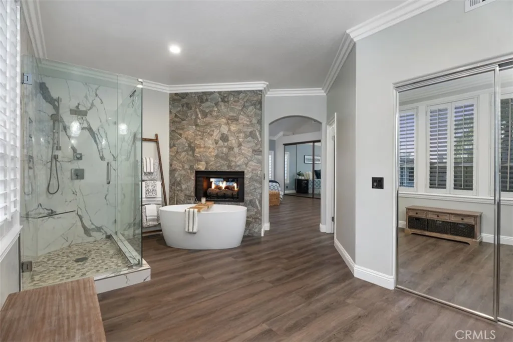 Located at the end of a Private Cul-De-Sac within the Gated Community of Walden, this tastefully Upgraded Residence offers a blend of privacy and scenic views overlooking the communitys Catch-And-Release Pond. Upon entry you are greeted by Soaring Ceilings that lead from the formal Living Area into a sophisticated Dining Room. At the heart of the home, the Chefs Kitchen features a stunning Quartz Island and Stainless Steel Appliances, opening directly to a comfortable Family Room anchored by a cozy Fireplace. The Main Floor is designed for versatility, providing a Guest Bedroom with an Ensuite FULL Bath, a dedicated Home Office, a convenient Laundry Room, and a half Bath. The upper level is highlighted by a Primary Suite complete with a Fireplace and a Balcony that captures stunning views of the Lake. The attached Spa-Like Primary Bath features Dual Sinks, a Soaking Tub, and a separate Walk-In Shower. On the opposite wing, Two Additional Bedrooms sit adjacent to a Full Bathroom with Dual Sinks, while a spacious Bonus Room provides a versatile living space with Endless Possibilities, and can be converted into a 5th bedroom. The Backyard serves as a private Entertainers Paradise, centered around a sparkling Pool and Spa with a Waterfall feature and a Fire Pit. Hosting is made effortless by the Built-In BBQ station with ample seating and a dedicated Outdoor Dining area. The home is complete with a 2-Car Garage, originally a 3-Car Garage with one converted into an office. The garage was recently epoxied in the past few years. As a resident of Walden, enjoy the Community Pool, s