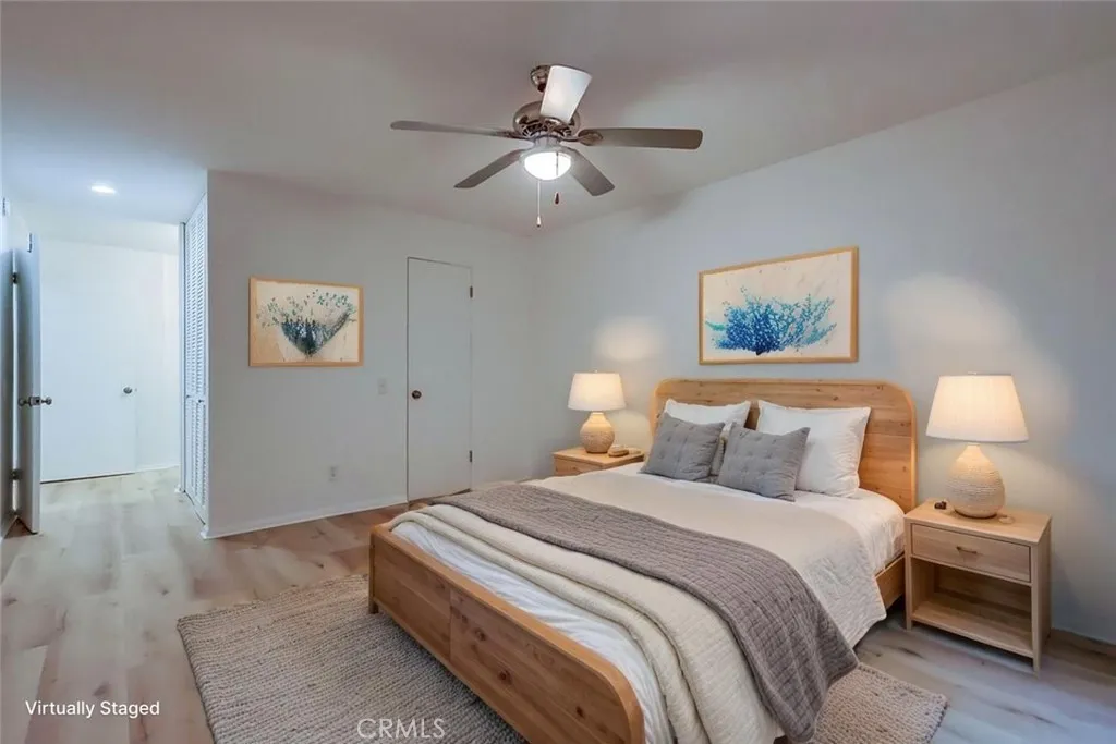 Welcome to Paradise in this Ocean Front one Level End Unit! 2 bedroom 2 bathroom condo w/stunning Pacific Ocean, Catalina Island, Golf Course & Hillside views awaits you! Massive outdoor patio boasts modern glass railings & striking panoramic ocean views giving you the best coastal experience! Outdoor deck is a rarity & is perfect for lounging, BBQing, entertaining, watching the ships sail by, staring at the stunning sunsets & star gazing. Enormous open concept living room boasts cozy gas fireplace, closet & outdoor deck access via sliding glass doors. Dining area attached to living room showcases amazing ocean views, plantation shutters, fresh paint & ceiling fan. Open concept chef's kitchen boasts stunning ocean views, recessed lights, tile backsplash, gorgeous, blue-toned cabinetry, stainless steel utility sink, stainless steel fridge, electric cooktop, double oven, dishwasher, recessed lights, walk-in pantry & lots of countertop space. Large primary bedroom features easy care laminate floors, huge walk-in closet, plantation shutters & bathroom ensuite. Primary bathroom offers 2 vanities/sink areas, walk-in shower & blue-toned cabinets. Guest bedroom has wall-to-wall closet space, sliding mirrored doors, lots of shelving & can be used as an office, 2nd bedroom or private home gym. Guest bathroom boasts blue-toned cabinets, single sink vanity & tub/shower combo. Laundry closet in home is convenient & comes with washer & dryer! Home features lots of storage spaces including coat closet, shelved utility closet, shelved panty & huge private storage (10ft x 6ft) in garage. 2