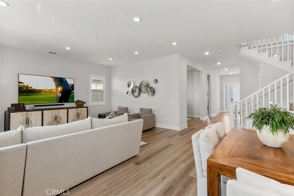 Introducing San Juan Capistranos newest gated enclave, this exquisitely upgraded, recently completed 2022 residence offers 4 bedrooms plus a main-level office and upstairs loft, where architectural beauty and modern comforts converge effortlessly. Featuring a stunning oversized island kitchen with sleek stainless steel appliances, quartz countertops, a striking sapphire backsplash, and a spacious walk-in pantry, the kitchen flows seamlessly into an open-concept living and dining great room illuminated by recessed lighting throughoutdesigned for both grand entertaining and intimate gatherings. A highly desirable main-level bedroom with full bath offers flexibility for guests or multigenerational living, while the dedicated downstairs office provides the perfect work-from-home retreat. Upstairs, the spacious loft creates an additional lounge or media haven, complemented by the convenience of an upstairs laundry room. The grand primary suite is a true sanctuary, featuring a generously proportioned bedroom retreat, two walk-in closets, and a spa-inspired bath with an expansive dual-sink vanity, a freestanding soaking tub, and an oversized walk-in showerdesigned for indulgent relaxation. Plantation shutters throughoutalong with custom blinds in the family roomadd a refined architectural touch and timeless elegance. Step outside to a large backyard, beautifully landscaped with highly upgraded finishes, featuring an integrated covered patio with recessed lighting and a built-in stainless steel fireplace, creating a seamless indoor-outdoor entertaining experience. Residents also en