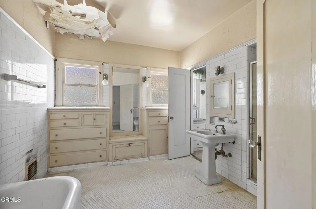 Nestled in the heart of Los Angeles and perched above the street, this timeless Spanish-style home is a rare gem brimming with character, history, and untapped potential for the owner user or investor alike. Behind its weathered facade lies a story waiting to be restored-original character and craftsmanship whisper of a bygone era when homes were built with artistry and intention. Walk in to the grand living room with arched ceilings completely opened to the dining room. Offering 3 spacious bedrooms 2, which share a jack n jill bathroom and the master with a spacious main bathroom and a powder room that leads right into the master, each space filled with natural light and the promise of transformation. On the other side of the home you have a sunshine filled kitchen with a charming breakfast nook, laundry area leading to a separate maid's quarters with a full bath that offers additional flexibility, whether restored for guest accommodations, extended family or creative use. Thought the home requires significant renovation the layout provides an ideal canvas for reimagining a warm and inviting retreat. Walk out to the spacious rear patio area that overlooks the sunny and refreshing backyard that can be a perfect space for your morning coffee. Every corner of this property speaks to its heritage-from the subtle architectural details to the functional layout. While it needs considerable care, work and vision, this is more than a fixer-it's an opportunity to revive a piece of Los Angeles charm and create something truly special.