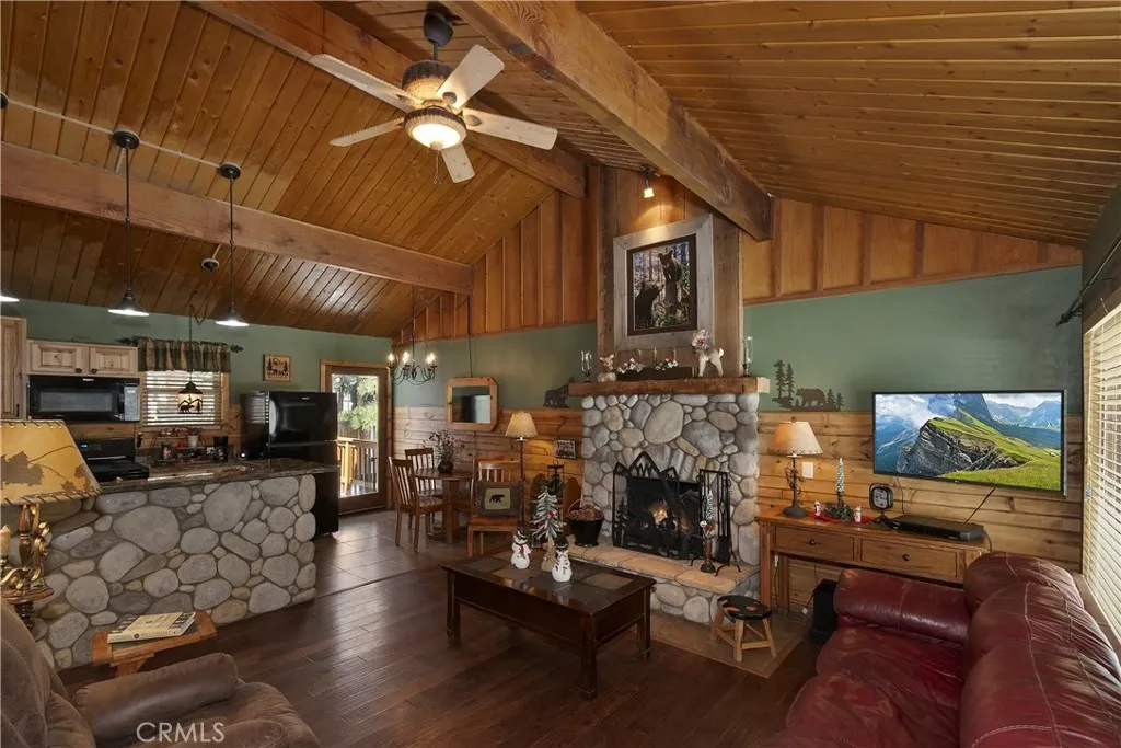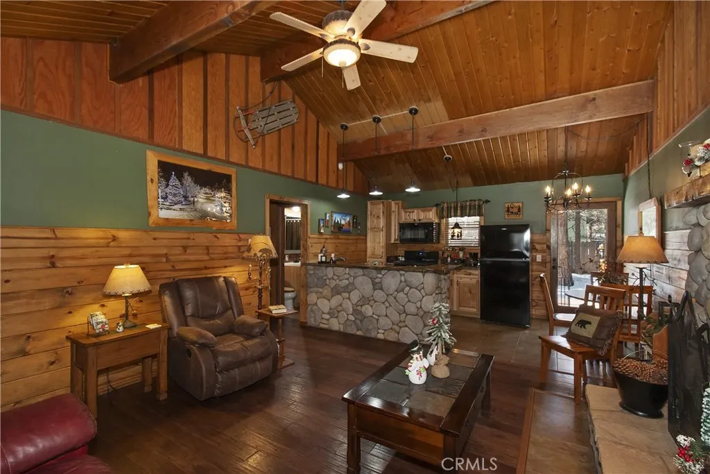Cute as a button! When you think of a clean, cozy mountain cabin getaway, this one checks ALL the boxes. This charming 2-bedroom, 1-bath home offers 744 square feet of pure mountain character and thoughtful custom touches throughout, and it sits on a spacious 5,000 square foot lot giving you room to breathe and enjoy true mountain living. From the moment you step inside, youre welcomed by warm vaulted T&G ceilings, beautiful granite countertops, and rich hickory cabinetry that perfectly complement the cabin aesthetic. The space feels inviting, comfortable, and effortlessly charming. Meticulously cared for, this home is ideal as a full-time residence or the perfect weekend retreat. Think Big Bears version of The Holiday cabin intimate, storybook charm with thoughtful touches. Outside, the fully fenced yard is perfect for your furry friends, and the landscaped backyard provides a spacious setting to relax, entertain, or simply enjoy the fresh mountain air. A storage shed offers extra space for tools, toys, and seasonal gear. This hidden gem truly must be seen in person to be fully appreciated.
