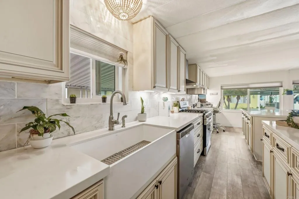 1.5 miles from the coast, 33 Parkwood Lane invites you to slow down and enjoy the effortless beauty of coastal living in Oceanside. This beautifully remodeled 3-bedroom, 2-bath manufactured home offers 1,248 sqft of light-filled space, thoughtfully designed for both comfort and style. The heart of the home is a stunning kitchen featuring two islandsperfect for morning coffee, casual dining, or gathering with friends after a day at the beach. Updated bathrooms add a spa-like touch, creating a true sense of everyday retreat. Located in an ALL-AGES community with LOW, controlled space rent of approximately $500/month, this is your chance to enjoy the beach lifestyle without the premium price tag.
