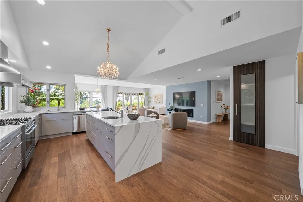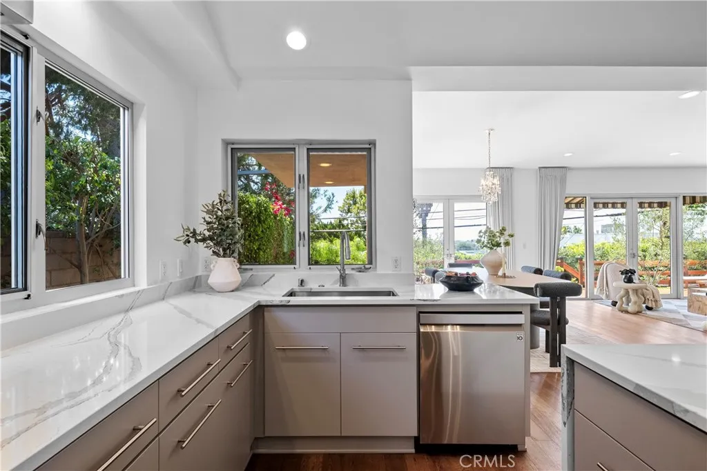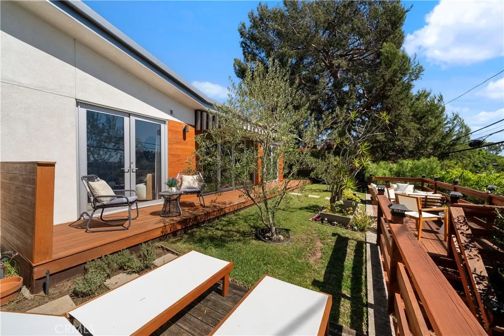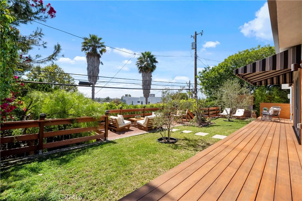 Luxurious single-story 3-bedroom, 3-bath residence in the heart of Mar Vista. Meticulously redesigned and rebuilt in 2016, this exquisite home combines modern sophistication with artistic detail, perched atop a gentle slope in a bright, quiet neighborhood with breathtaking panoramic city and ocean views. A striking custom faade and expansive redwood deck set the tone for the elegance within. Inside, engineered hardwood floors, central A/C, and an open-concept design create a refined atmosphere filled with natural light all year round. The chefs kitchen is a true showpiece, boasting quartz countertops, a grand island, premium stainless-steel appliances, and a professional five-burner rangeperfect for both gourmet cooking and stylish entertaining.The living and dining areas are bathed in sunlight and flow seamlessly to a serene back deck, also accessible from the luxurious primary suite. This private retreat offers the ideal setting for morning coffee or evening relaxation with stunning views. Two additional bedrooms, two-and-a-half baths, and a thoughtfully placed laundry room complete the home. Just minutes from renowned schools, beaches, shopping, dining, and freeways, this rare Mar Vista gem offers the ultimate blend of luxury, convenience, and tranquilityan unparalleled lifestyle in one of the Westsides most coveted communities.