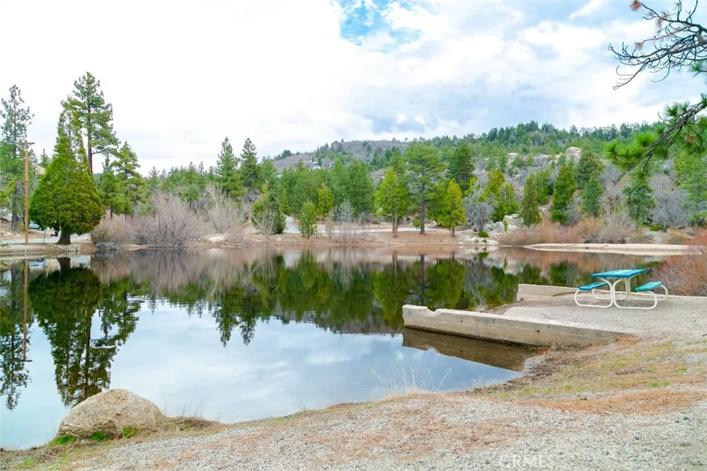 Tucked away in the quiet mountain community of Arrowbear Lake, halfway between Lake Arrowhead and Big Bear, this rare single story retreat offers privacy, flat usable land, and a direct connection to nature that few mountain homes can match. From the backyard, enjoy peaceful views of nearby Arrowbear Lake, while a seasonal stream runs gently along the side and rear of the property, flowing toward the lake just beyond. Deer sightings are common right from the front door. Completely remodeled with permits and completed in 2023, this custom home blends modern comfort with thoughtful mountain design. The open kitchen features quartz countertops, a custom wood island with power outlets, and a full suite of included appliances. The living room is anchored by a striking rock fireplace with wood burning capability and gas ignition, creating a warm and inviting gathering space. Built with durability and efficiency in mind, the home features extra thick insulated exterior walls, forced air heating, indoor laundry, and two 50 gallon gas water heaters for abundant hot water. Set on approximately 0.38 acres, the property offers rare flat terrain with privacy on three sides and undeveloped land surrounding most of the parcel. Over 1,000 square feet of decks and patios extend the living space outdoors, while level paved parking accommodates 8 or more vehicles, RVs, or group gatherings. Whether used as a full time residence, mountain retreat, or private getaway, this is a truly special Arrowbear offering where land, water, and tranquility come together.
