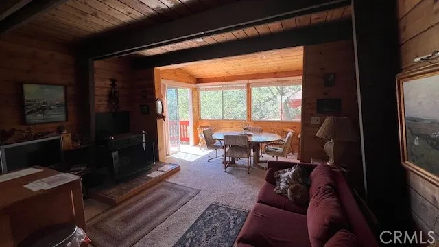Priced to Sell! Gambrel Style cabin offers 3 bedrooms and 2 baths on 3 floors, 1 bath on main floor with kitchen, dinning room, wood burning stove with sitting area with its own private deck. Downstairs offers a family and 1 more bath and a wood burning stove with a sleeping area and access to back yard. This cabin offers a slice of paradise amidst breathtaking surroundings and located on the quite side of the valley, cabin is a dream come true for outdoor enthusiasts and nature lovers alike, for those who crave winter adventures, this idyllic town is also in close proximity to Snow Valley Ski Resort making it a perfect haven for snow boarders and skiers. the floor plan I s versatile it either had 3 bedroom or 2 bedrooms and a den/ game room with a bathroom on 2 levels. Curb appeal with mature pine and fir trees, the setting is private with 2 entertaining decks for those warm summer nights in Green Valley Lake, parking structure is made with block and cement to last a lifetime.