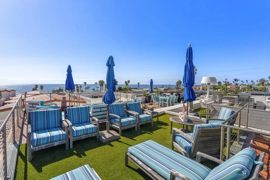 Welcome to 336 Gravilla, a fully renovated 3-bedroom, 2.5-bath residence with 2,377 sq. ft. of luxury living just west of La Jolla Boulevard. Perfectly situated only steps from Windansea Beach, this home offers panoramic ocean views from multiple vantage points and an expansive rooftop deck complete with a BBQ, television, outdoor dining, and lounge seating ideal for sunsets and entertaining. The main level features an open-concept design with a spacious living area and a chefs kitchen highlighted by a large center island, perfect for gatherings. Bedrooms are generously sized, providing comfort and privacy for family, guests, or groups. The home comes fully furnished with a designers touch, blending style and functionality throughout. Additional features include an attached two-car garage for convenience and storage, as well as modern upgrades that elevate coastal living. With world-class beaches, shopping, and dining just moments away, this home offers exceptional value in one of La Jollas most sought-after neighborhoods.